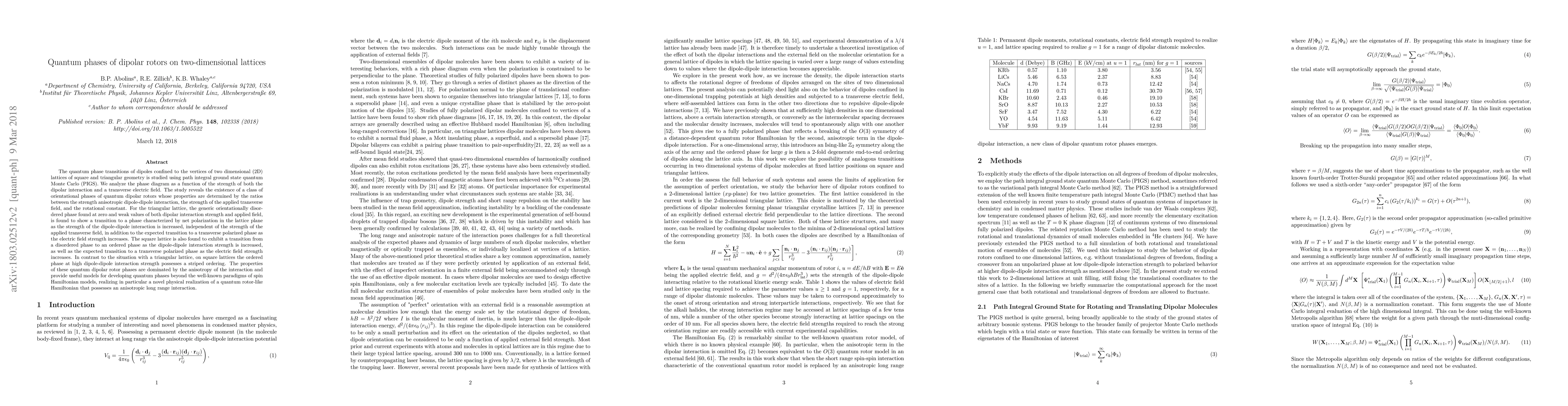 This paper investigates quantum phase transitions of dipolar rotors on 2D square and triangular lattices using quantum Monte Carlo simulations. It reveals novel orientational phases determined by the ratios of dipolar interaction strength, applied electric field, and rotational constant, with distinct phase behaviors and orderings on different lattice geometries.