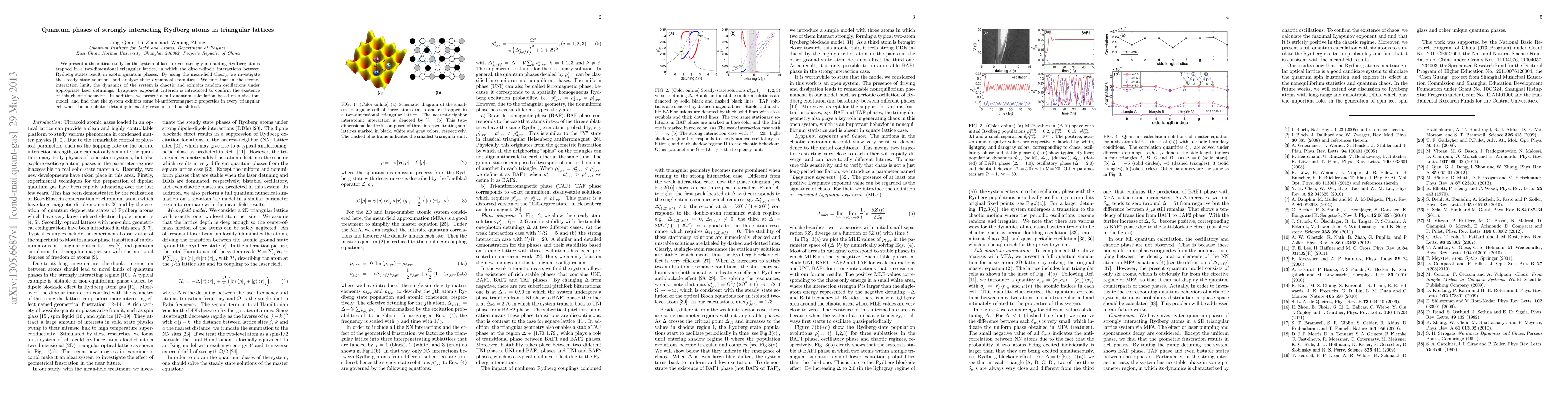 This paper investigates the quantum phases of strongly interacting Rydberg atoms in a triangular lattice, revealing chaotic dynamics and random oscillations under specific laser conditions. The study combines mean-field theory and quantum calculations to uncover bi-antiferromagnetic properties in the system.