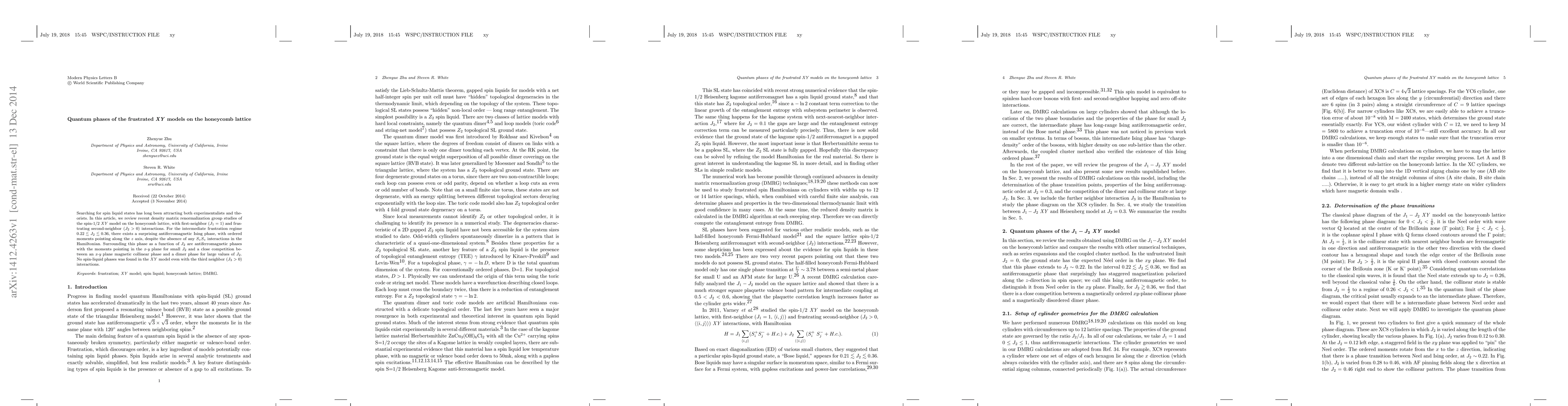 This paper reviews density matrix renormalization group studies on the spin-1/2 XY model on a honeycomb lattice, revealing an unexpected antiferromagnetic Ising phase in an intermediate frustration regime, with no spin-liquid phases observed even with additional interactions.