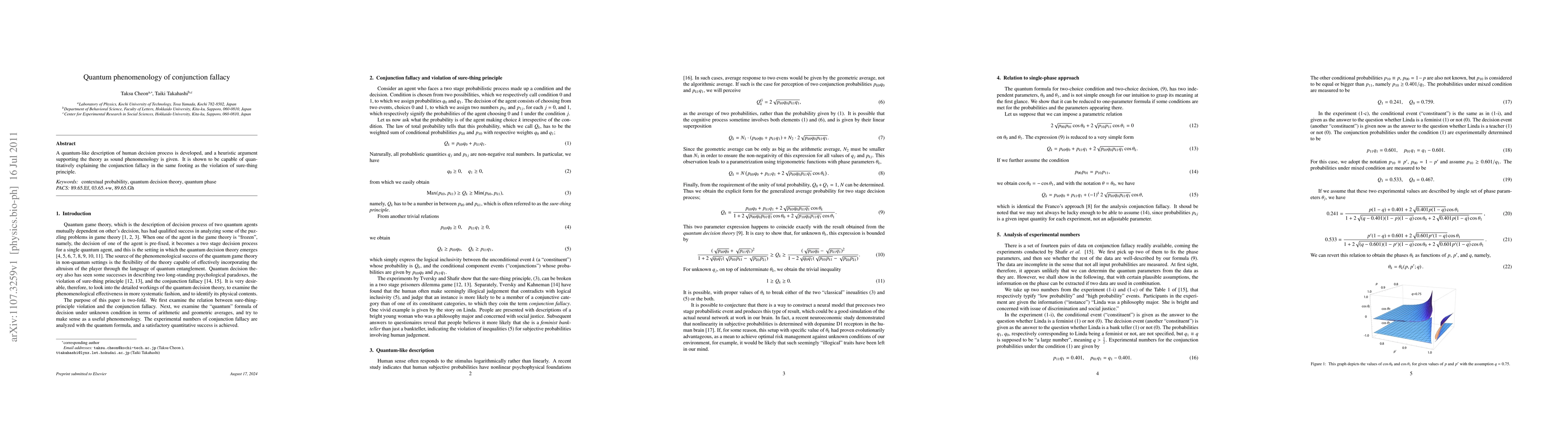 A quantum-like description of human decision process is developed, and a heuristic argument supporting the theory as sound phenomenology is given. It is shown to be capable of quantitatively explaining the conjunction fallacy in the same footing as the violation of sure-thing principle.