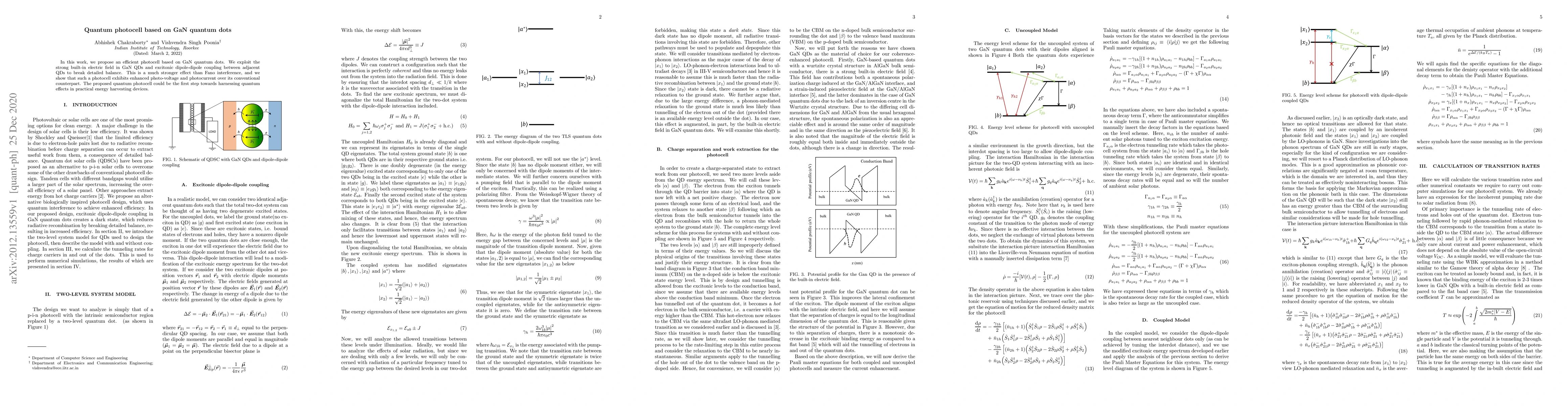This research proposes an efficient photocell utilizing GaN quantum dots, leveraging their strong built-in electric field and excitonic coupling for enhanced photo-voltage and photocurrent, potentially paving the way for quantum-enhanced energy harvesting devices.