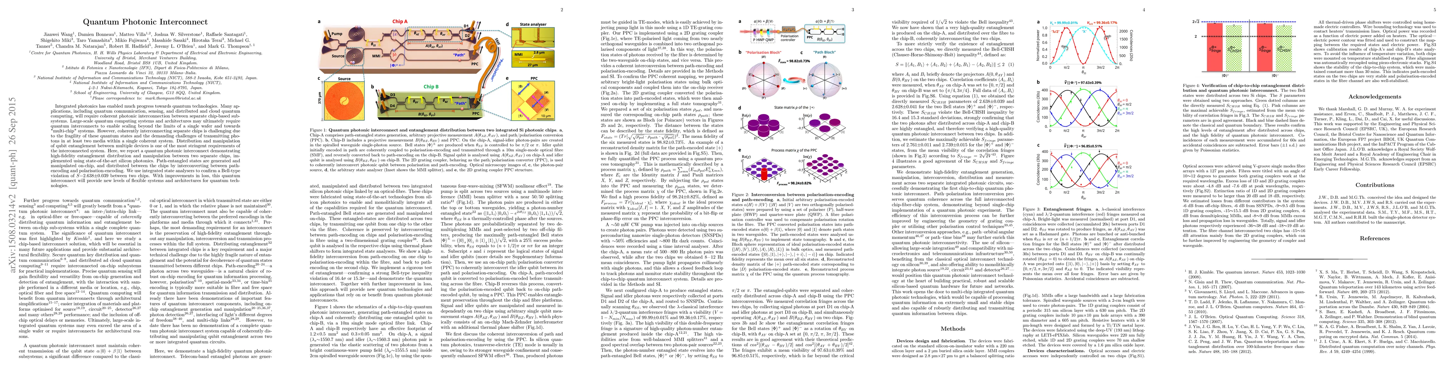 The paper presents the first successful demonstration of a chip-to-chip quantum photonic interconnect, capable of generating, manipulating, distributing, and measuring high-fidelity entangled photons across separate integrated photonic circuits.