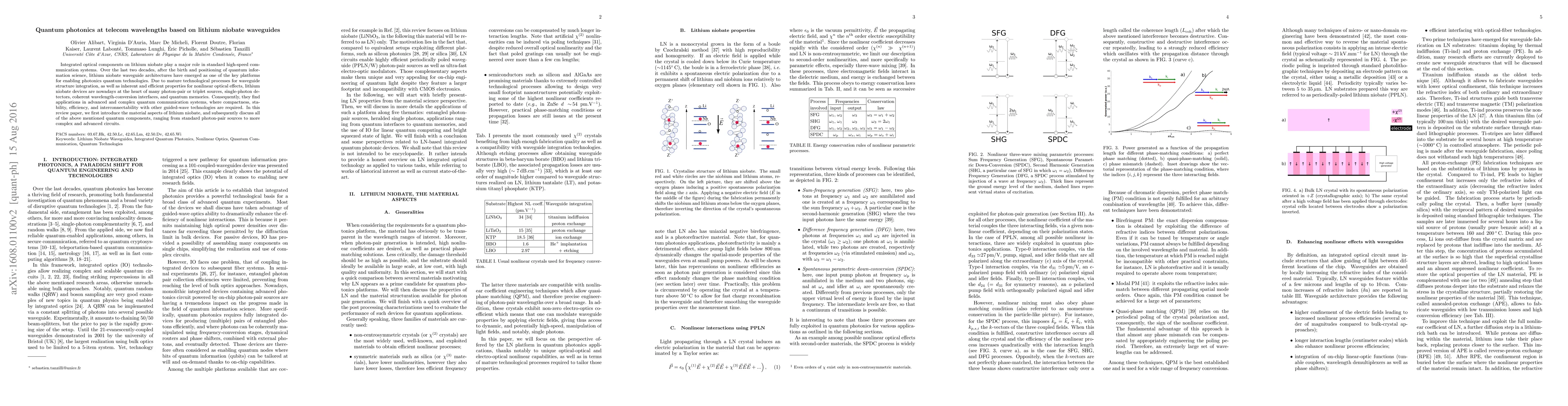 This review paper discusses the pivotal role of lithium niobate waveguides in quantum photonics at telecom wavelengths, highlighting their technological maturity and inherent properties that make them ideal for advanced quantum communication systems, including photon-pair sources, single-photon detectors, and quantum memories.