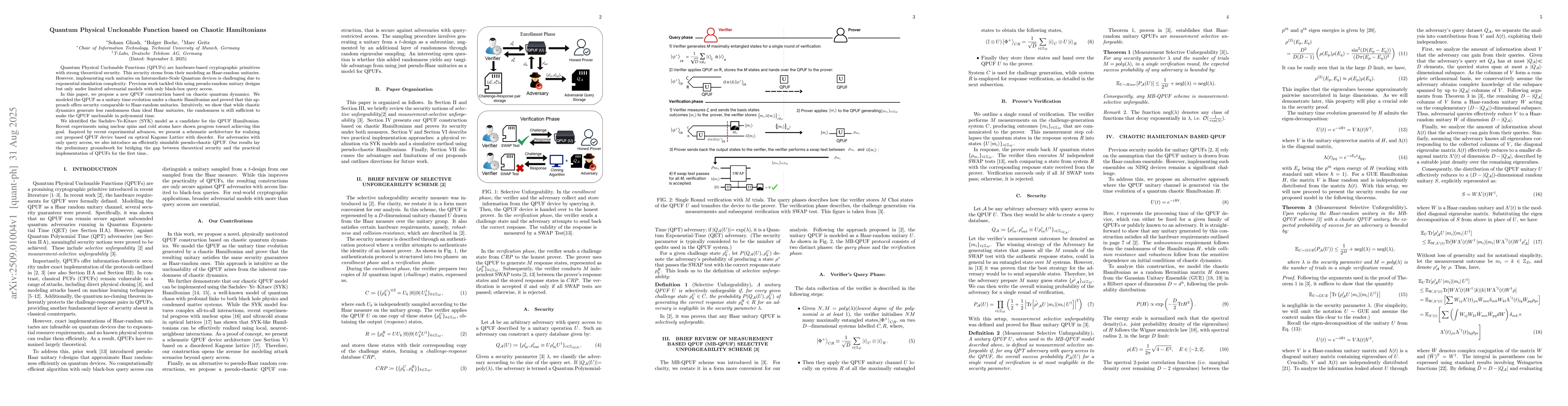 Quantum Physical Unclonable Functions (QPUFs) are hardware-based cryptographic primitives with strong theoretical security. This security stems from their modeling as Haar-random unitaries. However, implementing such unitaries on Intermediate-Scale Quantum devices is challenging due to exponential simulation complexity. Previous work tackled this using pseudo-random unitary designs but only under limited adversarial models with only black-box query access. In this paper, we propose a new QPUF construction based on chaotic quantum dynamics. We modeled the QPUF as a unitary time evolution under a chaotic Hamiltonian and proved that this approach offers security comparable to Haar-random unitaries. Intuitively, we show that while chaotic dynamics generate less randomness than ideal Haar unitaries, the randomness is still sufficient to make the QPUF unclonable in polynomial time. We identified the Sachdev-Ye-Kitaev (SYK) model as a candidate for the QPUF Hamiltonian. Recent experiments using nuclear spins and cold atoms have shown progress toward achieving this goal. Inspired by recent experimental advances, we present a schematic architecture for realizing our proposed QPUF device based on optical Kagome Lattice with disorder. For adversaries with only query access, we also introduce an efficiently simulable pseudo-chaotic QPUF. Our results lay the preliminary groundwork for bridging the gap between theoretical security and the practical implementation of QPUFs for the first time.
