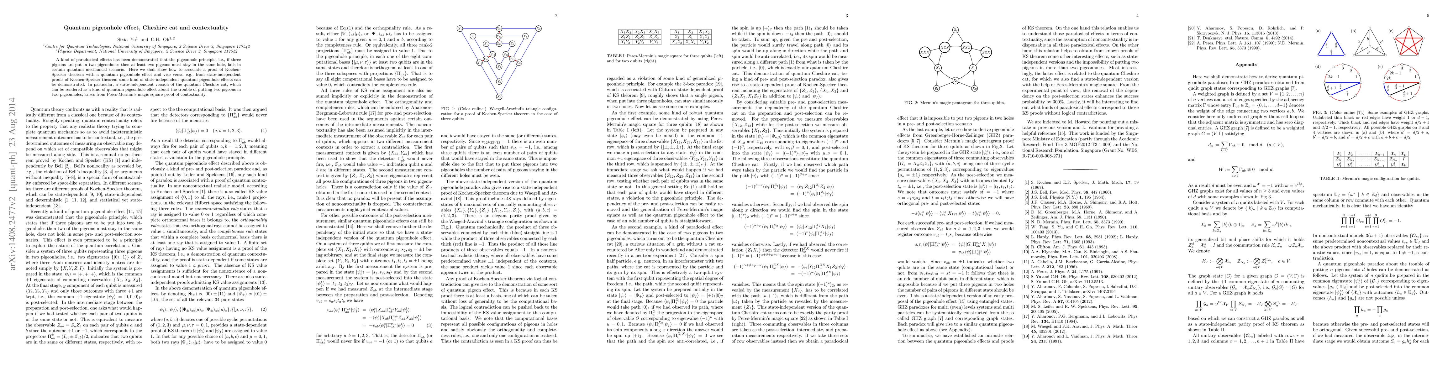 The paper introduces a novel approach linking quantum pigeonhole effects with KS theorem proofs, demonstrating state-independent versions of paradoxes like the quantum Cheshire cat.