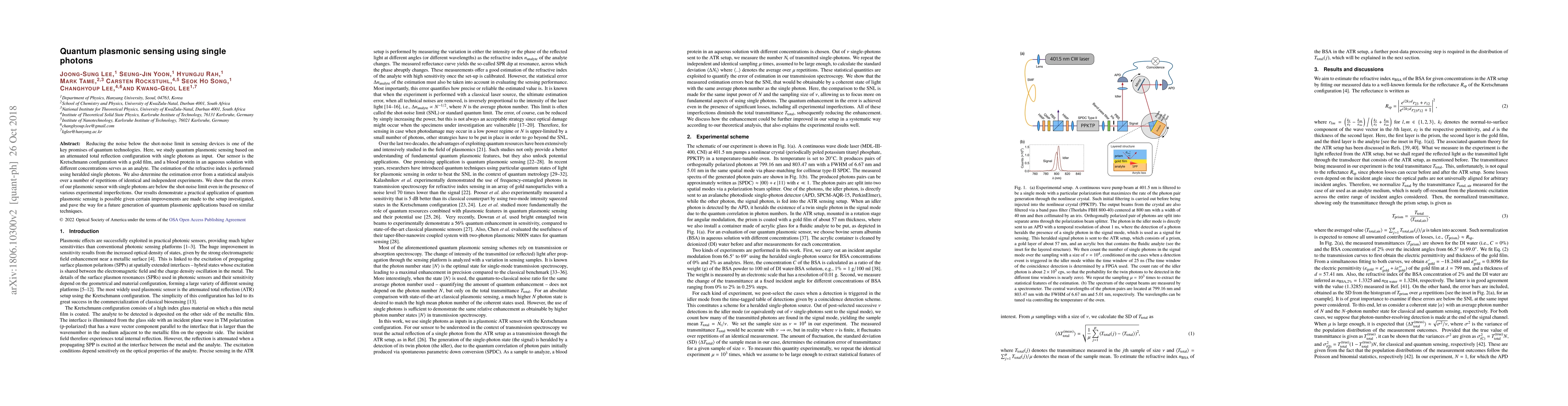 This paper explores quantum plasmonic sensing using single photons in an attenuated total reflection configuration, demonstrating that errors are below the shot-noise limit despite experimental imperfections. The study suggests potential for future quantum plasmonic applications with improved setups.