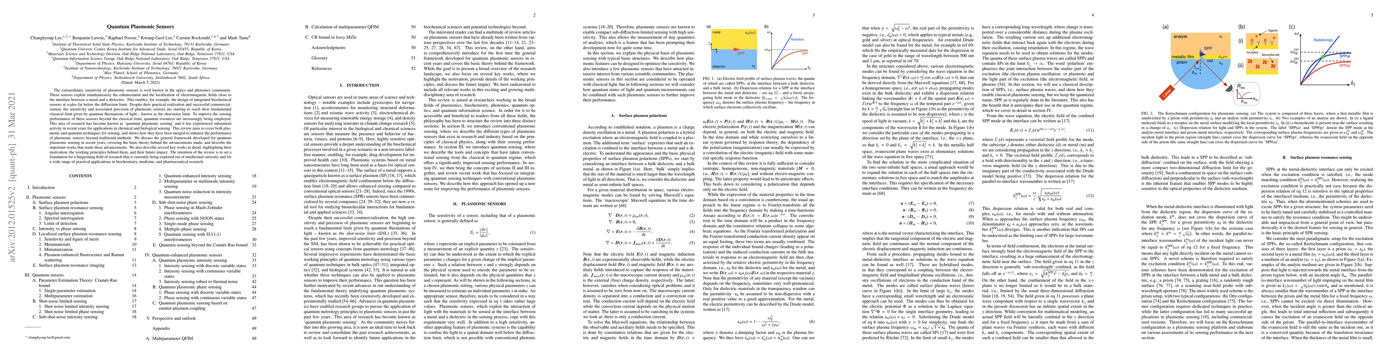 This paper reviews quantum plasmonic sensors, which leverage quantum resources to surpass the classical sensitivity limits of plasmonic sensors. It explores the integration of quantum techniques with plasmonic sensing to enhance performance, providing a foundation for future advancements in biochemical and medical applications.