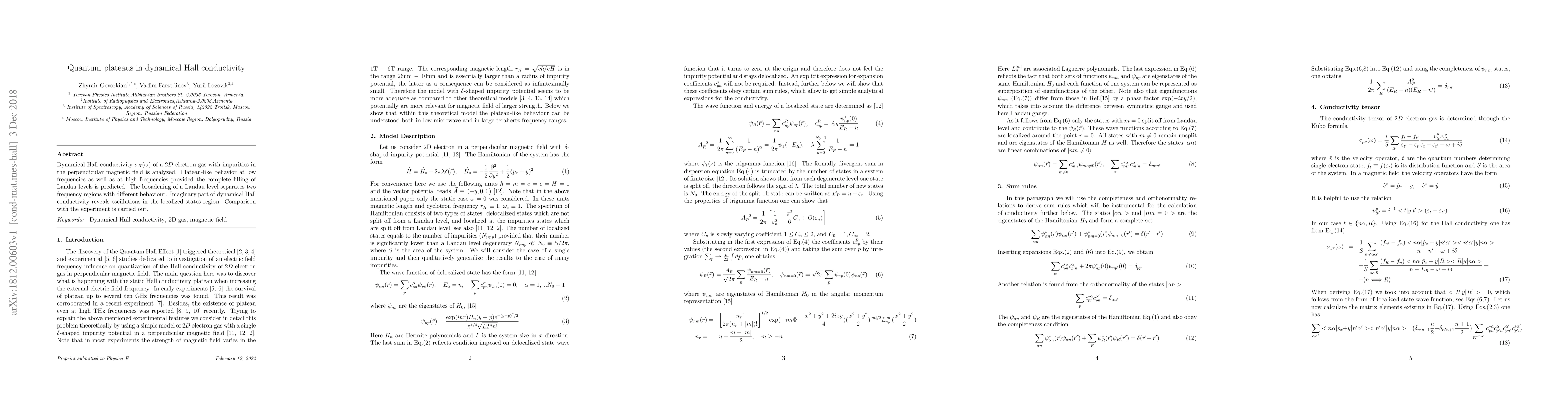 Dynamical Hall conductivity {\sigma}_H({\omega}) of a 2D electron gas with impurities in the perpendicular magnetic field is analyzed. Plateau-like behavior at low frequencies as well as at high frequencies provided the complete filling of Landau levels is predicted. The broadening of a Landau level separates two frequency regions with different behaviour. Imaginary part of dynamical Hall conductivity reveals oscillations in the localized states region. Comparison with the experiment is carried out.
