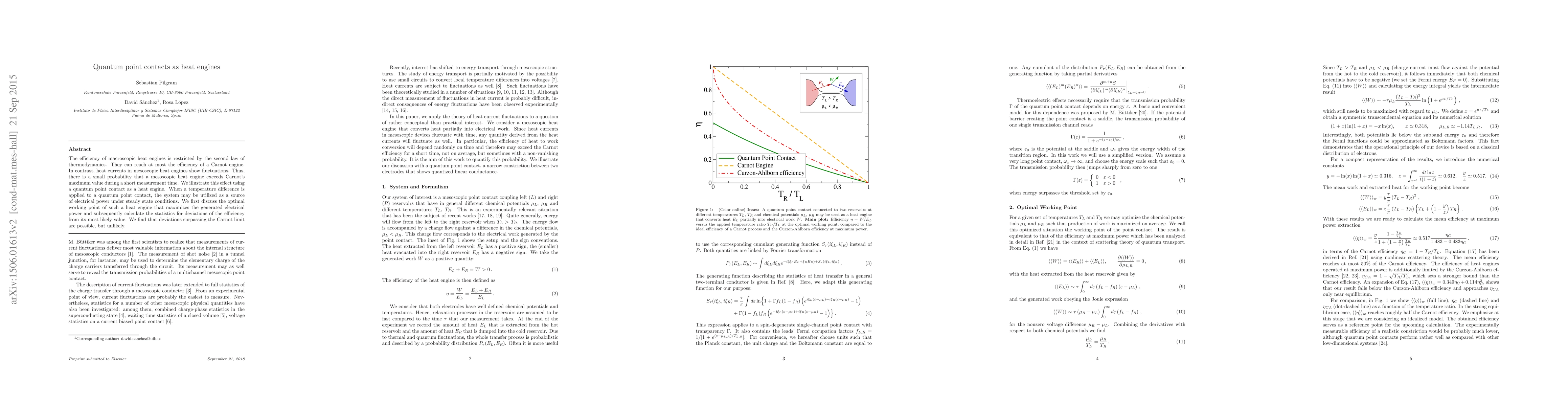 This paper explores the potential of quantum point contacts as mesoscopic heat engines, demonstrating that while they can theoretically exceed Carnot efficiency due to fluctuations, such deviations are rare and occur only with a small probability. The study identifies the optimal operating point to maximize electrical power output.