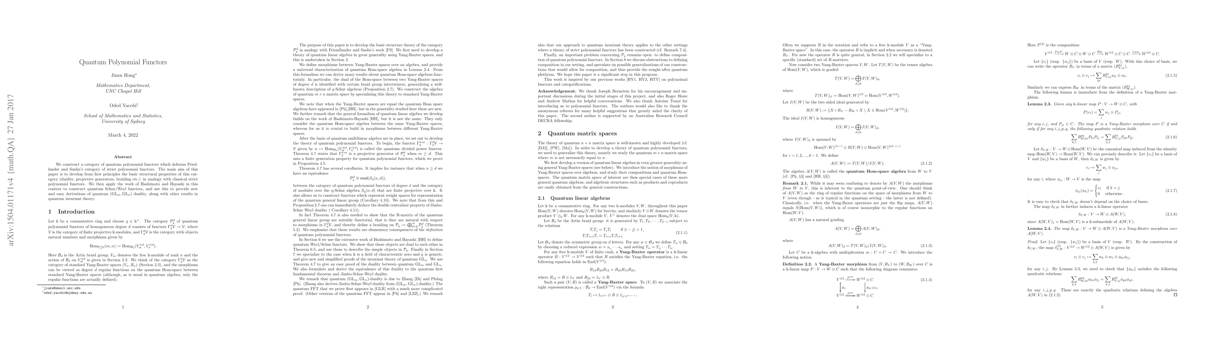 This paper introduces a category of quantum polynomial functors, extending Friedlander and Suslin's classical framework, and develops its fundamental structural properties, such as duality and braiding. It also constructs quantum Schur/Weyl functors to derive quantum $(GL_m,GL_n)$ duality and other results in quantum invariant theory.