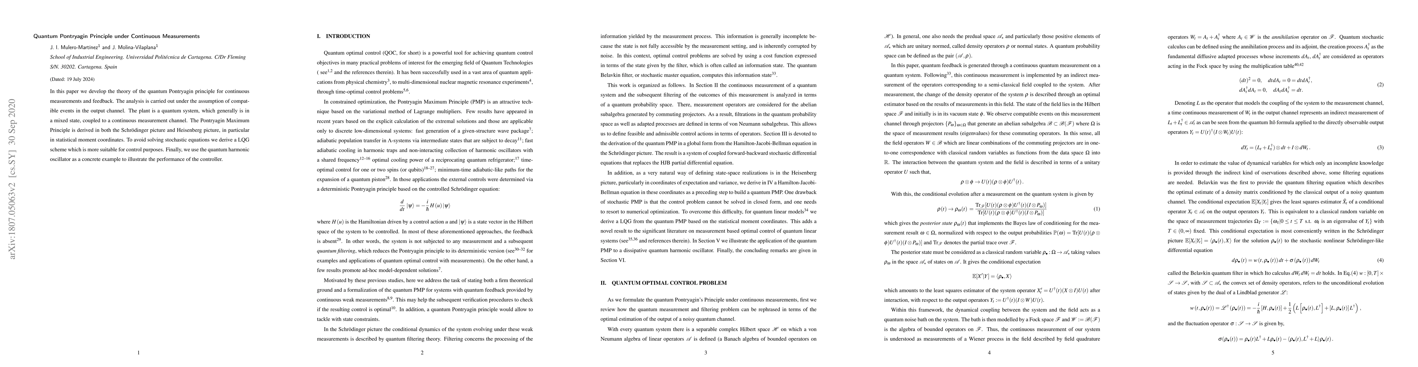 This paper develops the quantum Pontryagin principle for continuous measurements and feedback, focusing on compatible events in the output channel. It derives the Pontryagin Maximum Principle in both Schrödinger and Heisenberg pictures, and introduces a LQG scheme for practical control applications.