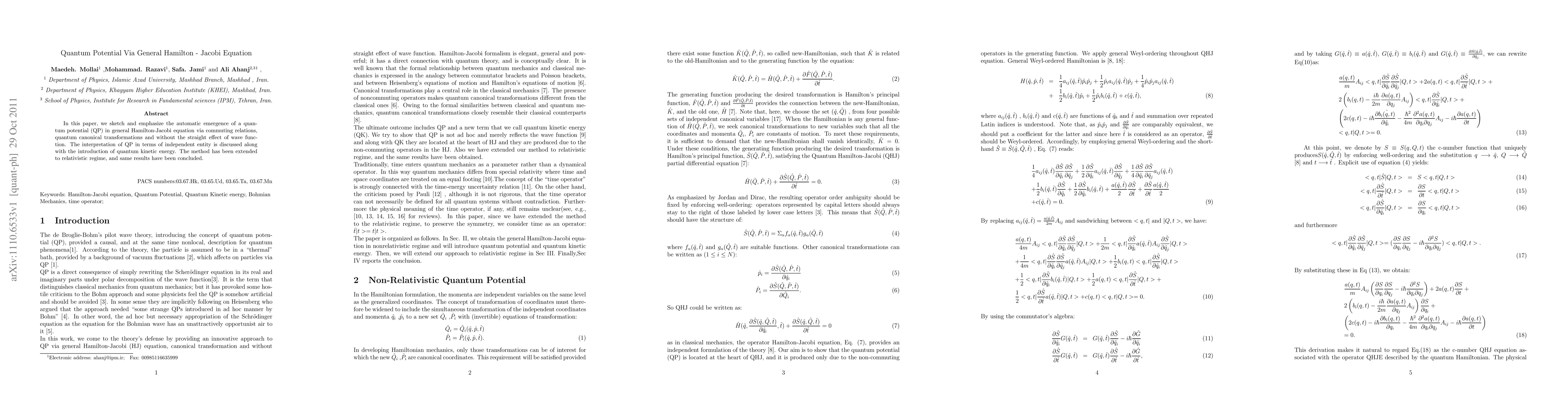 A new method shows that a quantum potential emerges automatically from the Hamilton-Jacobi equation without directly referencing wave functions, with implications for understanding quantum mechanics.