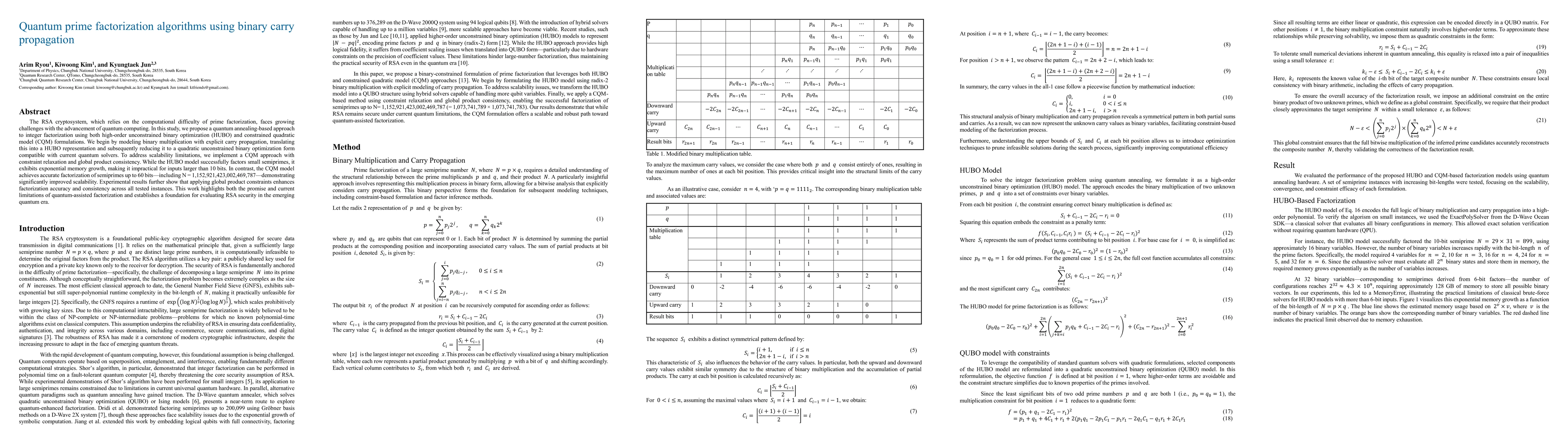 The RSA cryptosystem, which relies on the computational difficulty of prime factorization, faces growing challenges with the advancement of quantum computing. In this study, we propose a quantum annealing based approach to integer factorization using both high order unconstrained binary optimization (HUBO) and constrained quadratic model (CQM) formulations. We begin by modeling binary multiplication with explicit carry propagation, translating this into a HUBO representation and subsequently reducing it to a quadratic unconstrained binary optimization form compatible with current quantum solvers. To address scalability limitations, we implement a CQM approach with constraint relaxation and global product consistency. While the HUBO model successfully factors small semiprimes, it exhibits exponential memory growth, making it impractical for inputs larger than 10 bits. In contrast, the CQM model achieves accurate factorization of semiprimes up to 60 bits including N = 1152921423002469787 demonstrating significantly improved scalability. Experimental results further show that applying global product constraints enhances factorization accuracy and consistency across all tested instances. This work highlights both the promise and current limitations of quantum-assisted factorization and establishes a foundation for evaluating RSA security in the emerging quantum era.