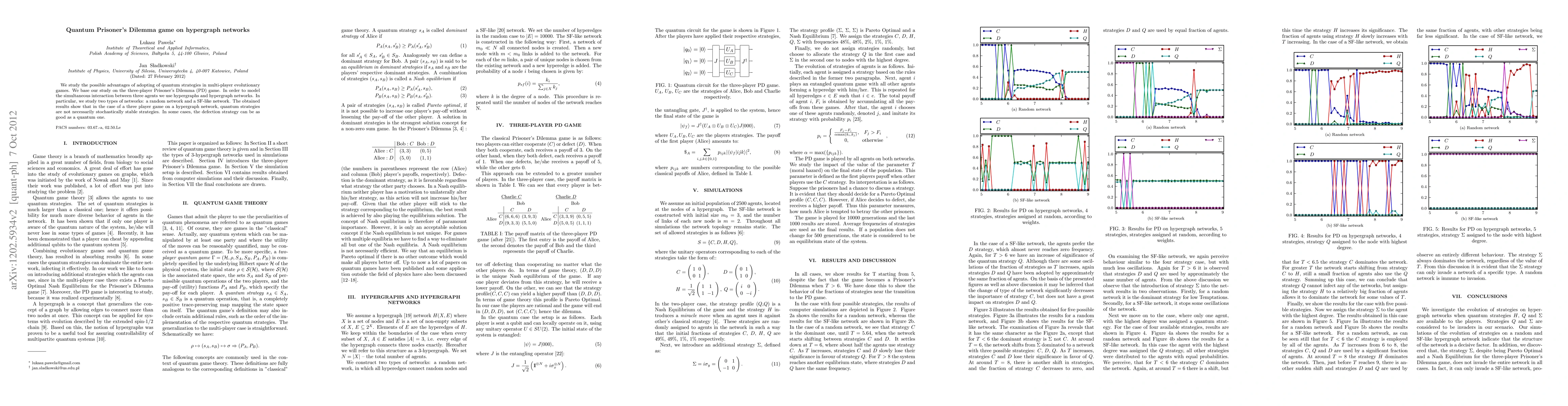 This paper investigates quantum strategies in a three-player Prisoner's Dilemma game on hypergraph networks, comparing random and SF-like network structures. The findings suggest that quantum strategies are not always superior, with defection sometimes performing equally well.