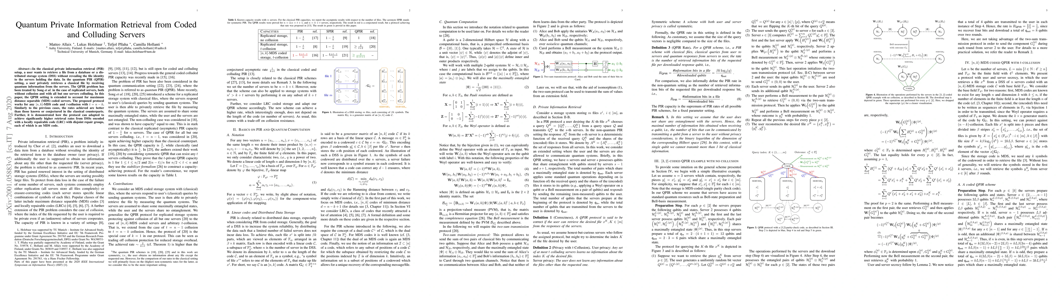 This paper proposes a quantum private information retrieval (QPIR) protocol for coded and colluding servers, extending previous work to handle maximum distance separable (MDS) coded servers and $t$-collusion. The protocol achieves better retrieval rates compared to classical counterparts and can be adapted for higher rates from distributed storage systems using locally repairable codes.