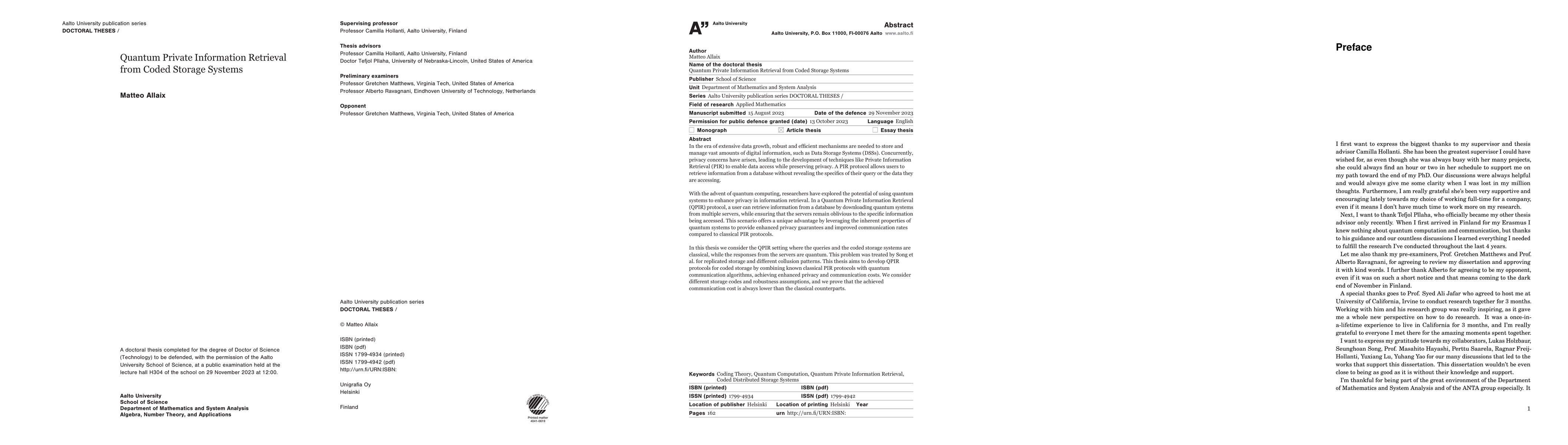 In the era of extensive data growth, robust and efficient mechanisms are needed to store and manage vast amounts of digital information, such as Data Storage Systems (DSSs). Concurrently, privacy concerns have arisen, leading to the development of techniques like Private Information Retrieval (PIR) to enable data access while preserving privacy. A PIR protocol allows users to retrieve information from a database without revealing the specifics of their query or the data they are accessing. With the advent of quantum computing, researchers have explored the potential of using quantum systems to enhance privacy in information retrieval. In a Quantum Private Information Retrieval (QPIR) protocol, a user can retrieve information from a database by downloading quantum systems from multiple servers, while ensuring that the servers remain oblivious to the specific information being accessed. This scenario offers a unique advantage by leveraging the inherent properties of quantum systems to provide enhanced privacy guarantees and improved communication rates compared to classical PIR protocols. In this thesis we consider the QPIR setting where the queries and the coded storage systems are classical, while the responses from the servers are quantum. This problem was treated by Song et al. for replicated storage and different collusion patterns. This thesis aims to develop QPIR protocols for coded storage by combining known classical PIR protocols with quantum communication algorithms, achieving enhanced privacy and communication costs. We consider different storage codes and robustness assumptions, and we prove that the achieved communication cost is always lower than the classical counterparts.