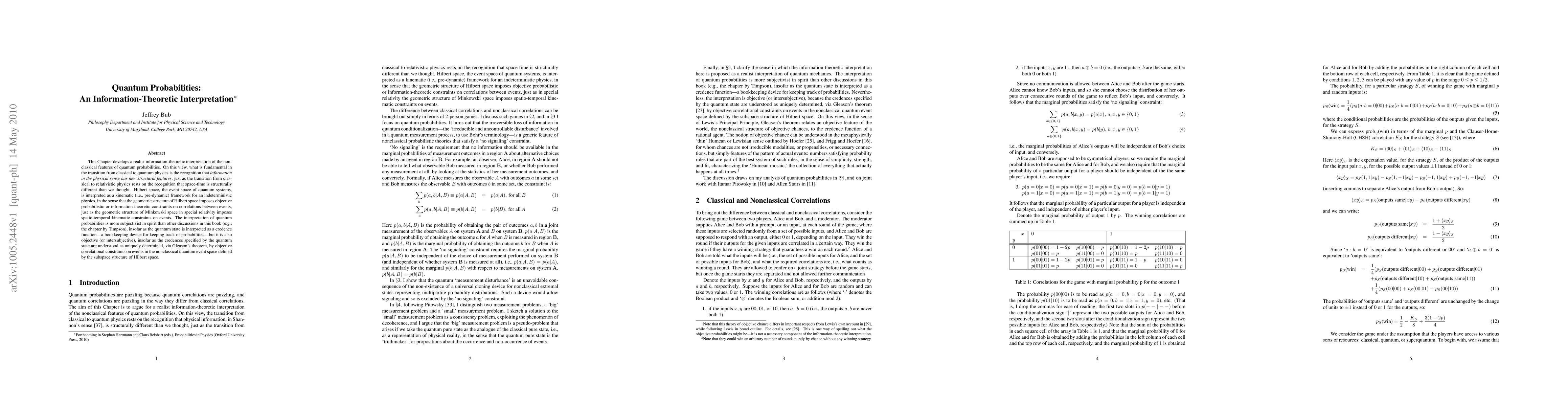 This Chapter develops a realist information-theoretic interpretation of the nonclassical features of quantum probabilities. On this view, what is fundamental in the transition from classical to quantum physics is the recognition that \emph{information in the physical sense has new structural features}, just as the transition from classical to relativistic physics rests on the recognition that space-time is structurally different than we thought. Hilbert space, the event space of quantum systems, is interpreted as a kinematic (i.e., pre-dynamic) framework for an indeterministic physics, in the sense that the geometric structure of Hilbert space imposes objective probabilistic or information-theoretic constraints on correlations between events, just as the geometric structure of Minkowski space in special relativity imposes spatio-temporal kinematic constraints on events. The interpretation of quantum probabilities is more subjectivist in spirit than other discussions in this book (e.g., the chapter by Timpson), insofar as the quantum state is interpreted as a credence function---a bookkeeping device for keeping track of probabilities---but it is also objective (or intersubjective), insofar as the credences specified by the quantum state are understood as uniquely determined, via Gleason's theorem, by objective correlational constraints on events in the nonclassical quantum event space defined by the subspace structure of Hilbert space.