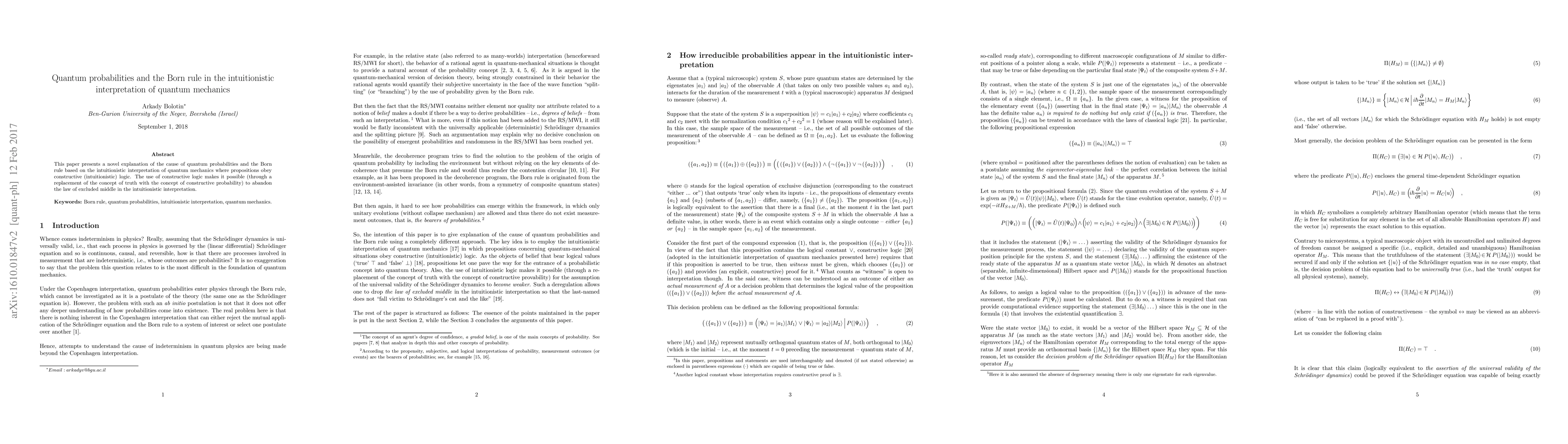 This paper explains quantum probabilities and the Born rule through the intuitionistic interpretation of quantum mechanics, employing constructive logic to replace traditional notions of truth with constructive probability, thereby allowing for the abandonment of the law of excluded middle.