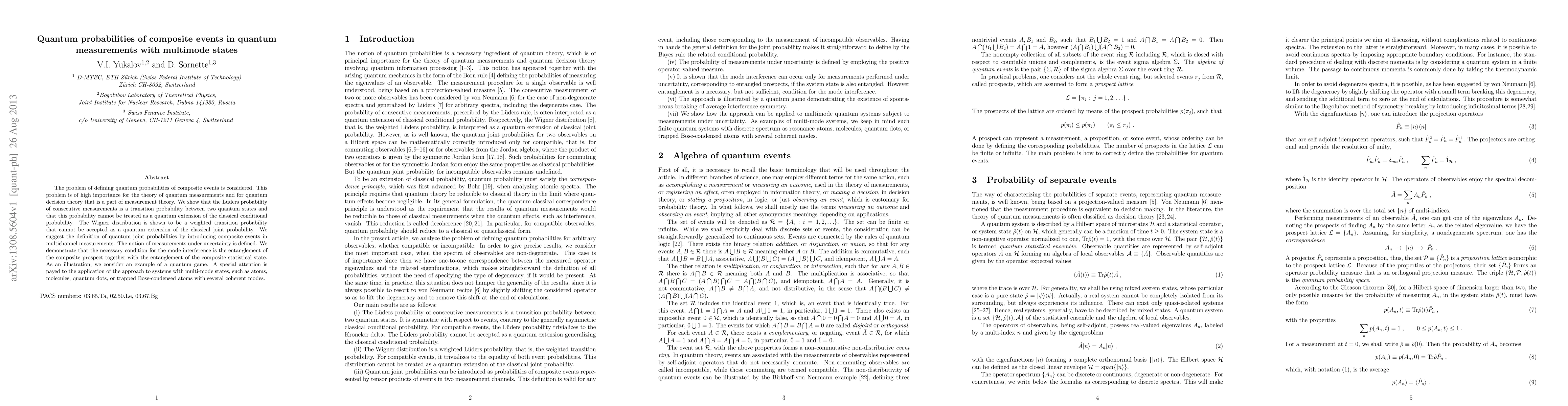 Researchers explore how to define probabilities for composite events in quantum measurements with multimode states, suggesting a new approach that considers entanglement of the composite prospect and statistical state. The study aims to improve our understanding of quantum decision theory and its application to systems like atoms and molecules.