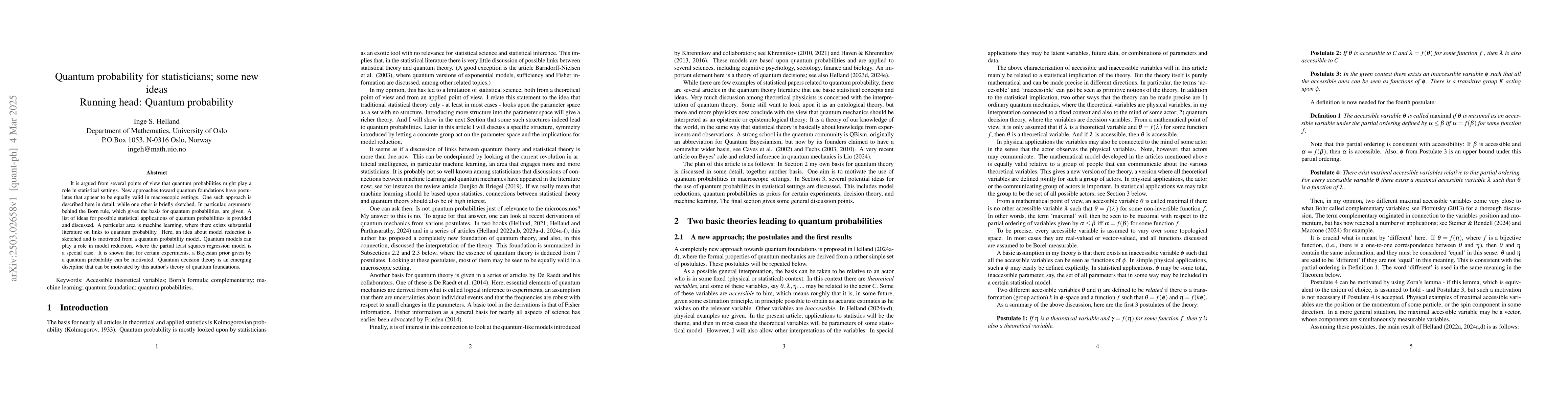 The paper discusses quantum probabilities in statistical settings, presenting a detailed approach and briefly sketching another, focusing on the Born rule and its implications for statistical applications such as machine learning and quantum decision theory.