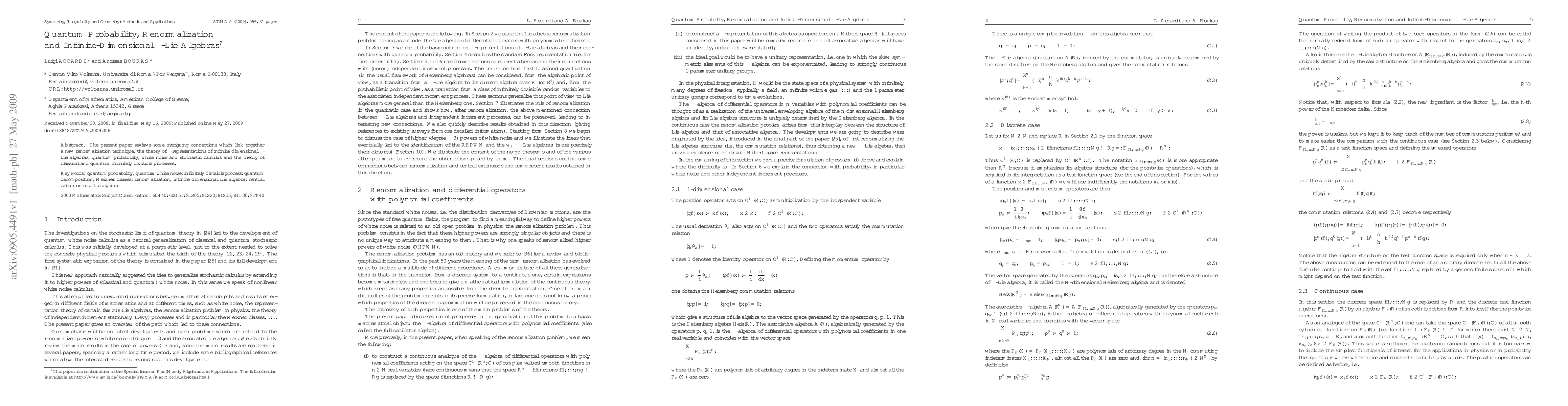 This paper explores the connections between a novel renormalization technique, the theory of *-representations of infinite-dimensional *-Lie algebras, quantum probability, white noise, stochastic calculus, and the theory of classical and quantum infinitely divisible processes. It highlights the interplay among these diverse mathematical and physical concepts.