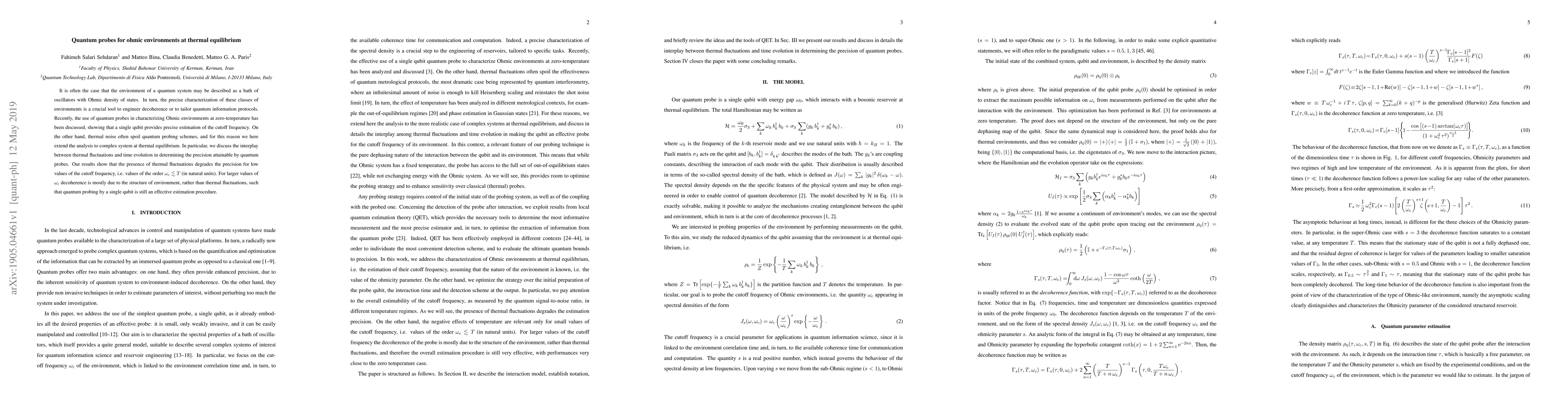 This paper explores the use of quantum probes to characterize Ohmic environments at thermal equilibrium, demonstrating that thermal fluctuations degrade precision for low cutoff frequencies, while high cutoff frequencies remain effectively probed by a single qubit.