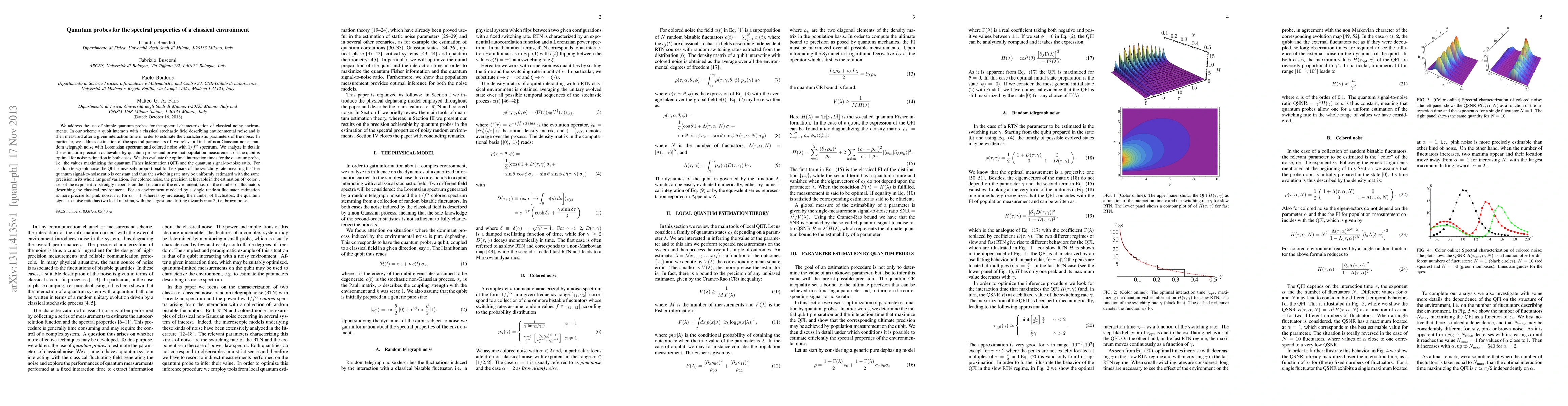 We address the use of simple quantum probes for the spectral characterization of classical noisy environments. In our scheme a qubit interacts with a classical stochastic field describing environmental noise and is then measured after a given interaction time in order to estimate the characteristic parameters of the noise. In particular, we address estimation of the spectral parameters of two relevant kinds of non-Gaussian noise: random telegraph noise with Lorentzian spectrum and colored noise with $1/f^{\alpha}$ spectrum. We discuss the estimation precision achievable by quantum probes by analyzing in details the behavior of the quantum Fisher information (QFI) as a function of the noise and the other parameters. We found that population measurement on the qubit is optimal for noise estimation and also evaluate the optimal interaction times for the quantum probe, i.e. the values maximizing the QFI and the quantum signal-to-noise ratio. For random telegraph noise the QFI is inversely proportional to the square of the switching rate, meaning that the quantum signal-to-noise ratio is constant and thus the switching rate may be uniformly estimated with the same precision in its whole range of variation. For colored noise, the precision achievable in the estimation of ``color'', i.e. of the exponent $\alpha$, strongly depends on the structure of the environment, i.e. on the number of fluctuators describing the classical environment. For an environment modeled by a single random fluctuator estimation is more precise for pink noise, i.e. for $\alpha=1$, whereas by increasing the number of fluctuators, the QFI is has two local maxima, with the largest one drifting towards $\alpha=2$, i.e. brown noise.