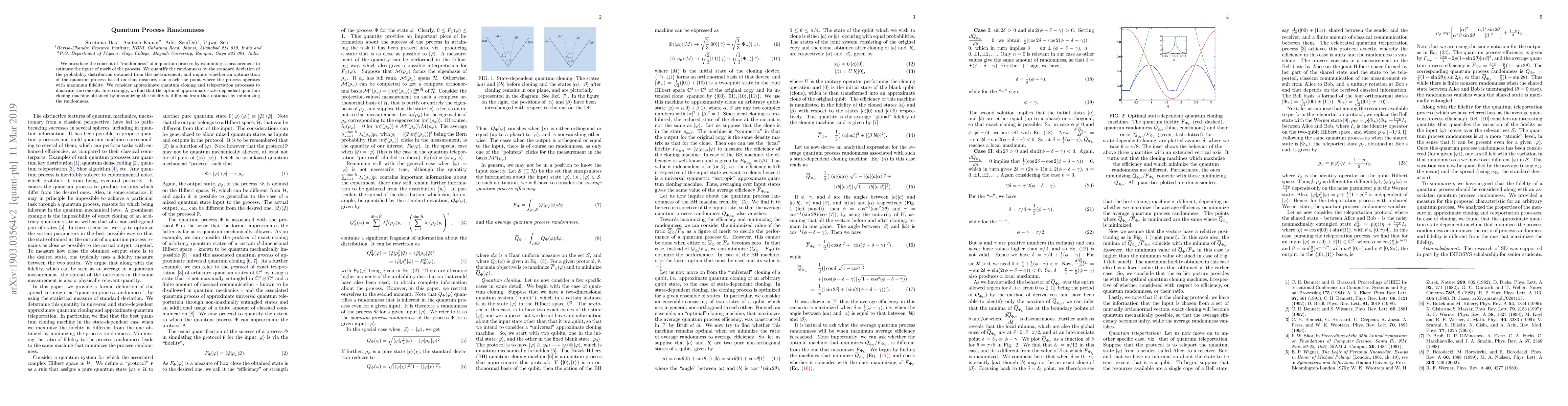 We study the optimization of any quantum process by minimizing the "randomness" in the measurement result at the output of that quantum process. We conceptualize and propose a measure of such randomness and inquire whether an optimization of the quantum process based on that measure, can reach the point where the process operates with maximum fidelity. We consider approximate quantum cloning and teleportation processes, and find, in particular, that the optimal approximate state-dependent quantum cloning machine obtained by maximizing the fidelity is different from that obtained by minimizing the randomness.