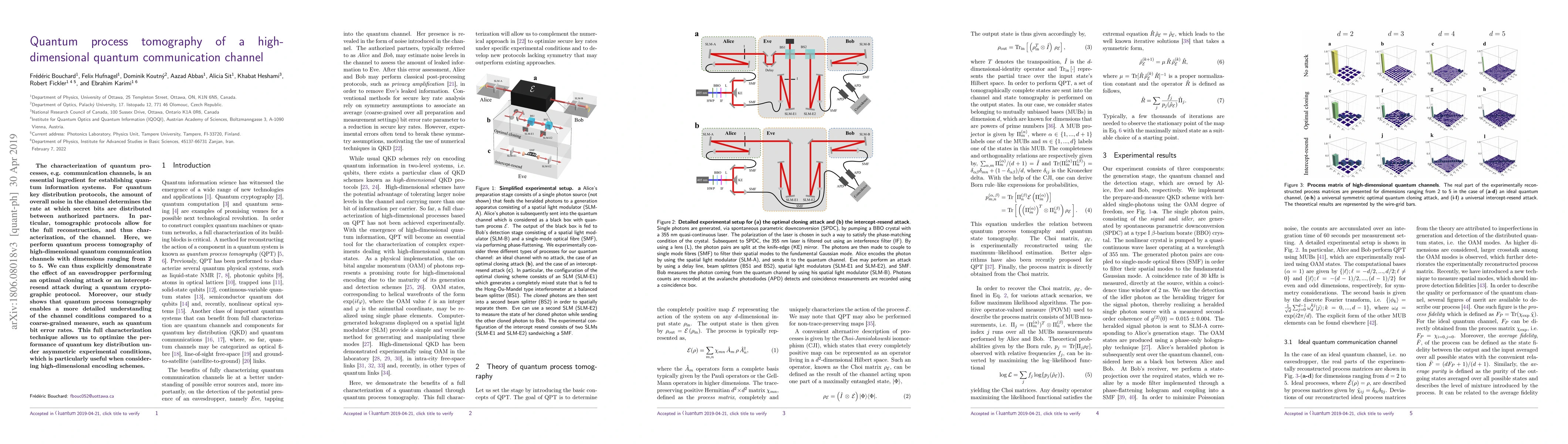 The characterization of quantum processes, e.g. communication channels, is an essential ingredient for establishing quantum information systems. For quantum key distribution protocols, the amount of overall noise in the channel determines the rate at which secret bits are distributed between authorized partners. In particular, tomographic protocols allow for the full reconstruction, and thus characterization, of the channel. Here, we perform quantum process tomography of high-dimensional quantum communication channels with dimensions ranging from 2 to 5. We can thus explicitly demonstrate the effect of an eavesdropper performing an optimal cloning attack or an intercept-resend attack during a quantum cryptographic protocol. Moreover, our study shows that quantum process tomography enables a more detailed understanding of the channel conditions compared to a coarse-grained measure, such as quantum bit error rates. This full characterization technique allows us to optimize the performance of quantum key distribution under asymmetric experimental conditions, which is particularly useful when considering high-dimensional encoding schemes.