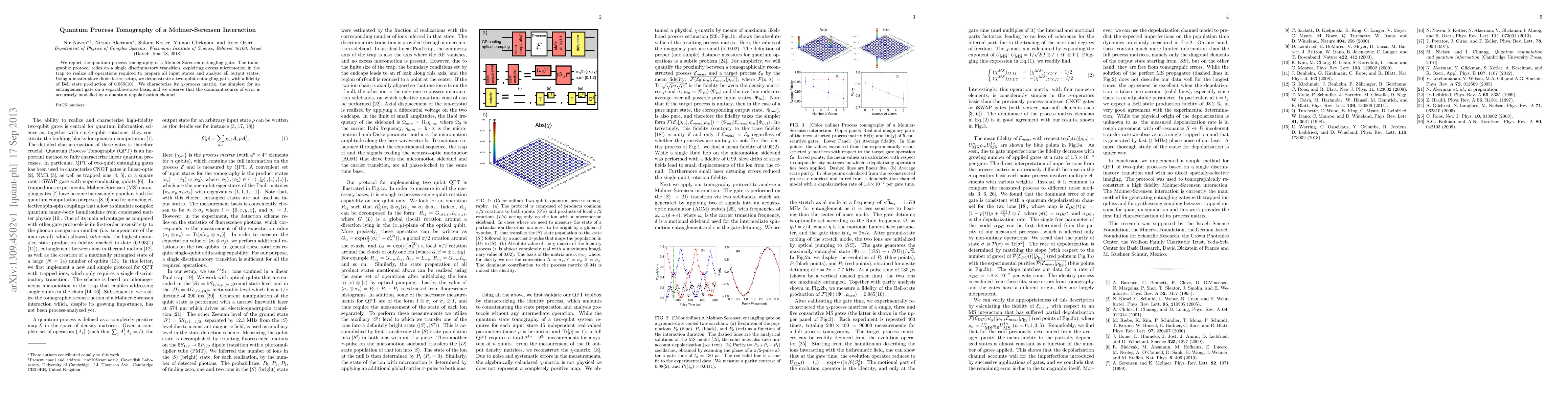 This paper presents quantum process tomography for a M$\o$lmer-S$\o$rensen entangling gate, achieving a Bell state production fidelity of 0.985(10). The study characterizes the $\chi$-process matrix and identifies quantum depolarization as the primary error source.