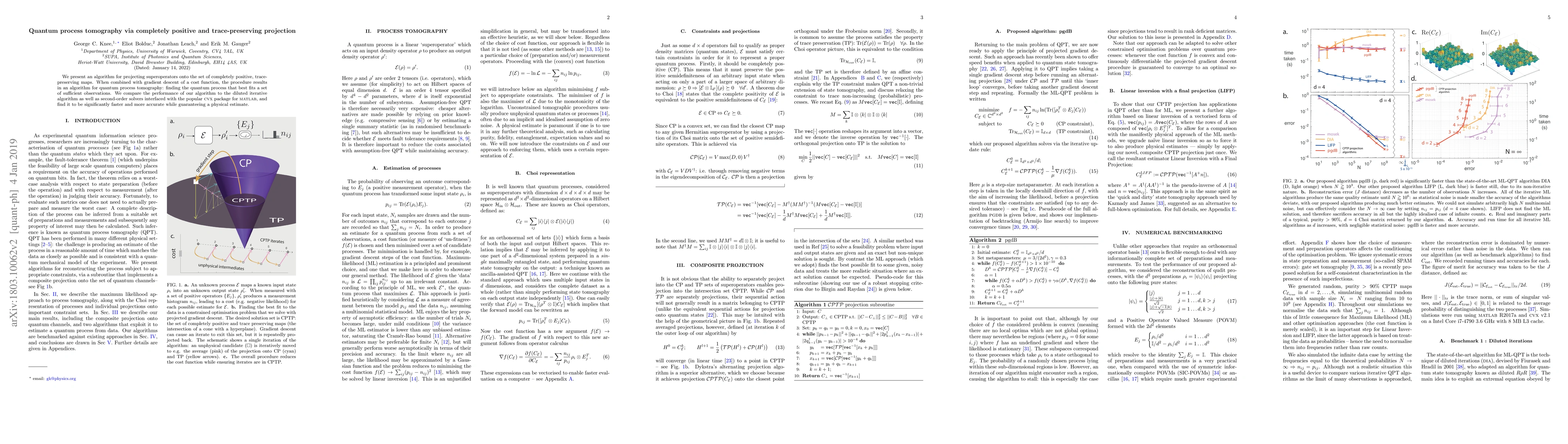 This paper introduces an efficient algorithm for quantum process tomography by projecting superoperators onto completely positive, trace-preserving maps, which, when used with gradient descent, outperforms existing methods like the diluted iterative algorithm and second-order solvers, offering faster and more accurate results.