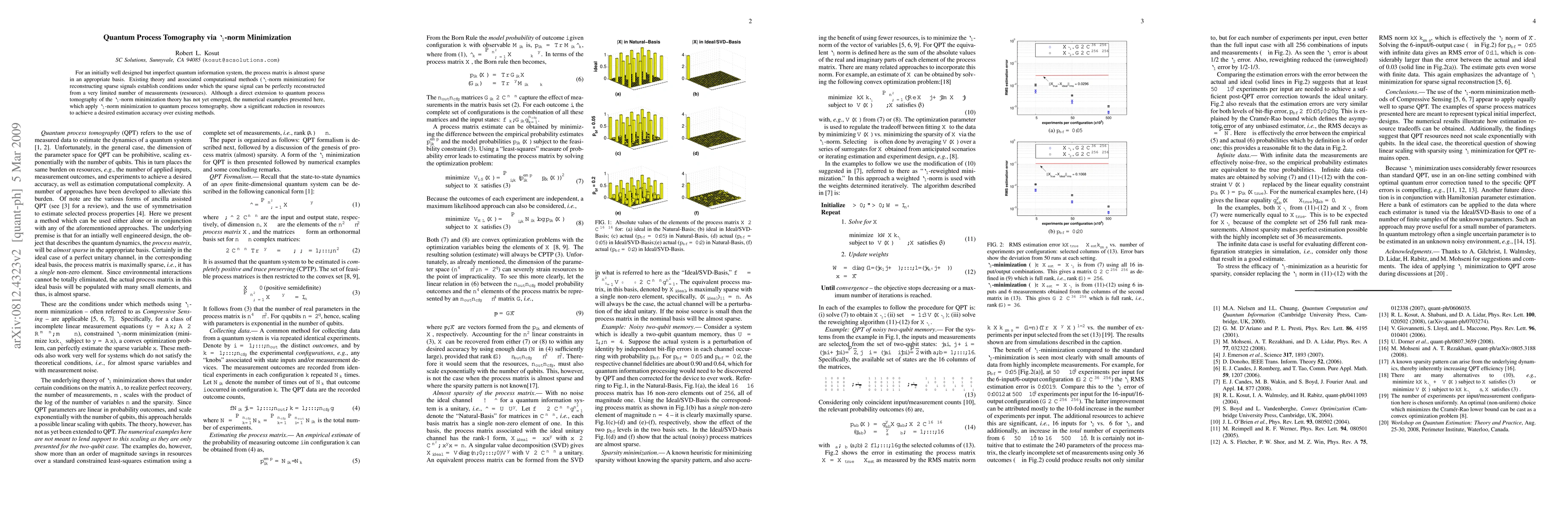 For an initially well designed but imperfect quantum information system, the process matrix is almost sparse in an appropriate basis. Existing theory and associated computational methods (L1-norm minimization) for reconstructing sparse signals establish conditions under which the sparse signal can be perfectly reconstructed from a very limited number of measurements (resources). Although a direct extension to quantum process tomography of the L1-norm minimization theory has not yet emerged, the numerical examples presented here, which apply L1-norm minimization to quantum process tomography, show a significant reduction in resources to achieve a desired estimation accuracy over existing methods.