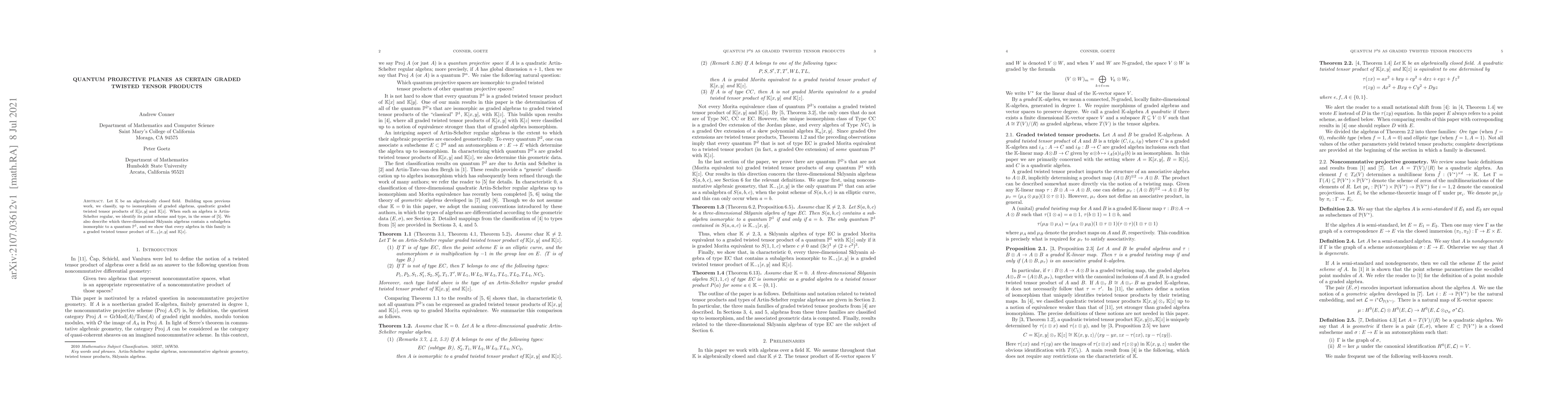 Let $\mathbb{k}$ be an algebraically closed field. Building upon previous work, we classify, up to isomorphism of graded algebras, quadratic graded twisted tensor products of $\mathbb{k}[x,y]$ and $\mathbb{k}[z]$. When such an algebra is Artin-Schelter regular, we identify its point scheme and type. We also describe which three-dimensional Sklyanin algebras contain a subalgebra isomorphic to a quantum $\mathbb{P}^1$, and we show that every algebra in this family is a graded twisted tensor product of $\mathbb{k}_{-1}[x,y]$ and $\mathbb{k}[z]$.