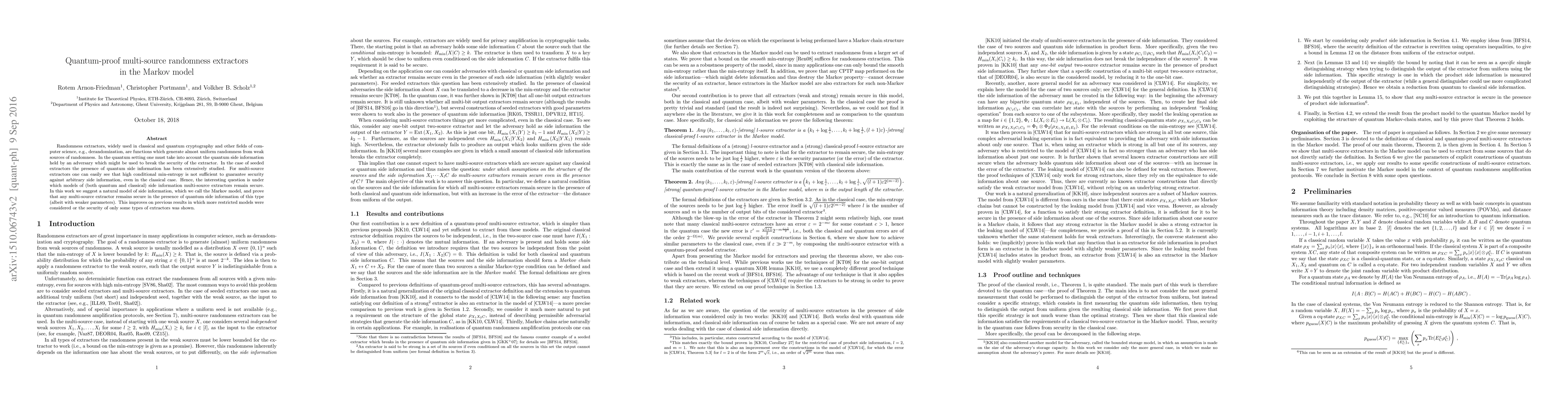 This paper proposes a Markov model for side information and demonstrates that multi-source randomness extractors remain secure against quantum adversaries within this model, improving upon previous results that only considered restricted models and certain types of extractors.
