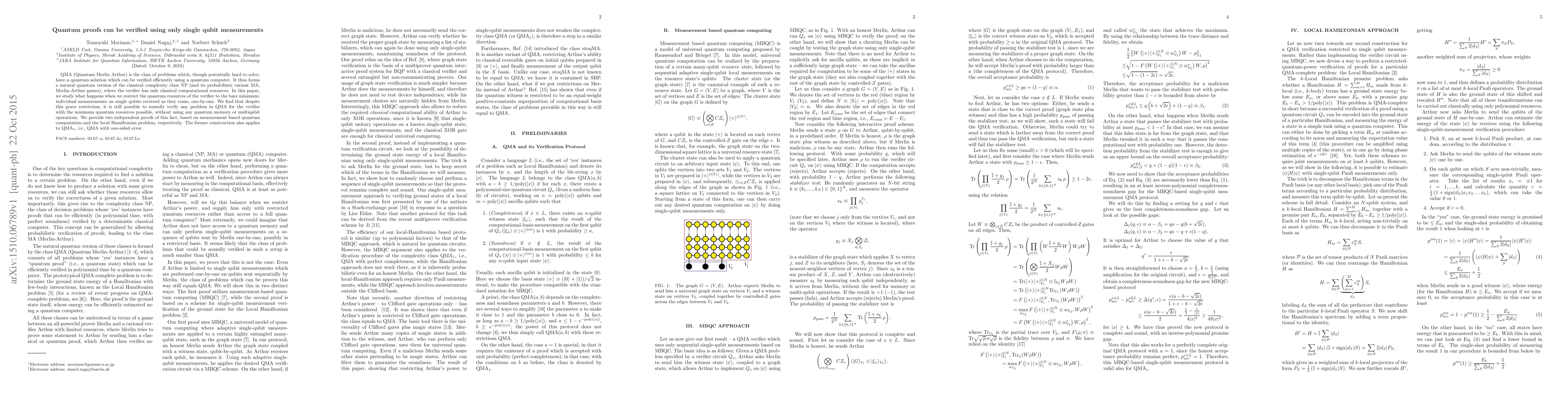 Researchers found that quantum proofs can be verified with just single qubit measurements, even without using quantum memory or multiqubit operations. This breakthrough applies to problems in QMA (Quantum Merlin Arthur) class with one-sided error.