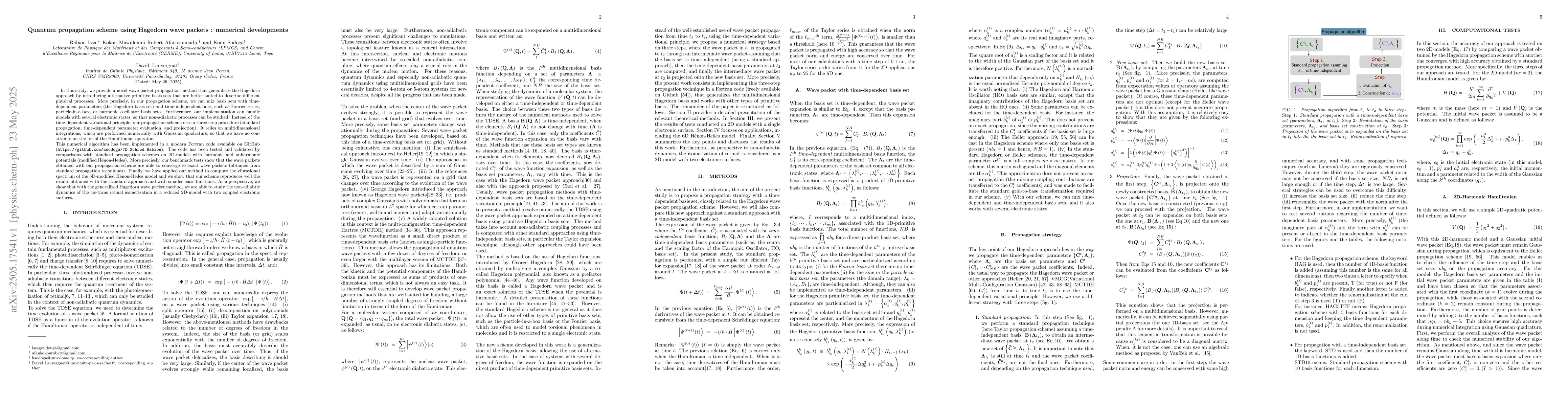 The research introduces a novel wave packet propagation method that generalizes the Hagedorn approach by mixing time-dependent and time-independent basis sets, enabling the study of non-adiabatic processes in models with multiple electronic states.