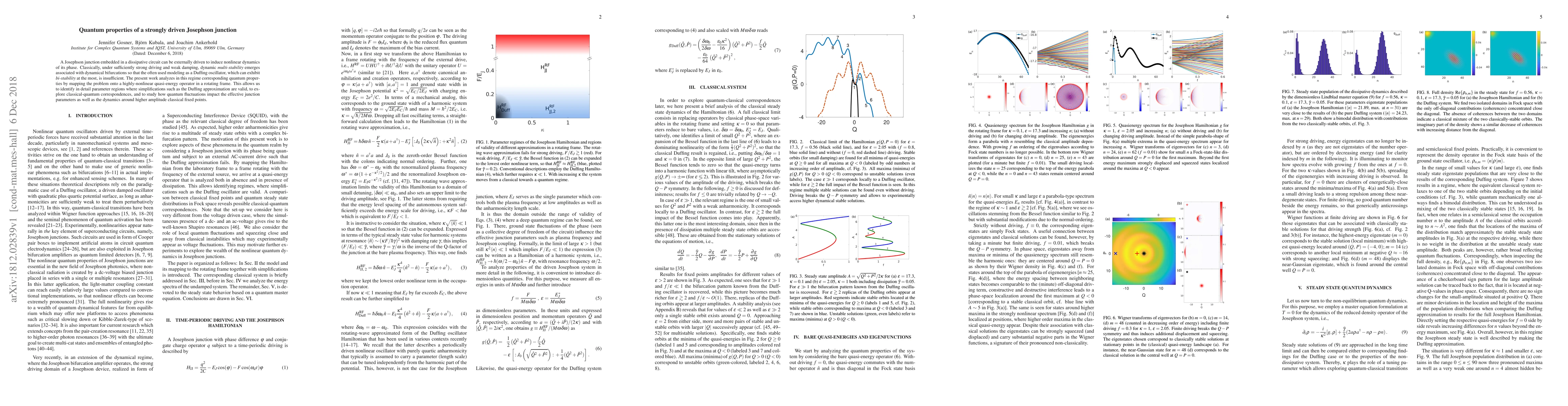 This paper investigates quantum properties in a strongly driven Josephson junction, mapping the system to a nonlinear quasi-energy operator to explore classical-quantum correspondences and the effects of quantum fluctuations on junction dynamics and parameter regions where classical models like the Duffing oscillator are valid.