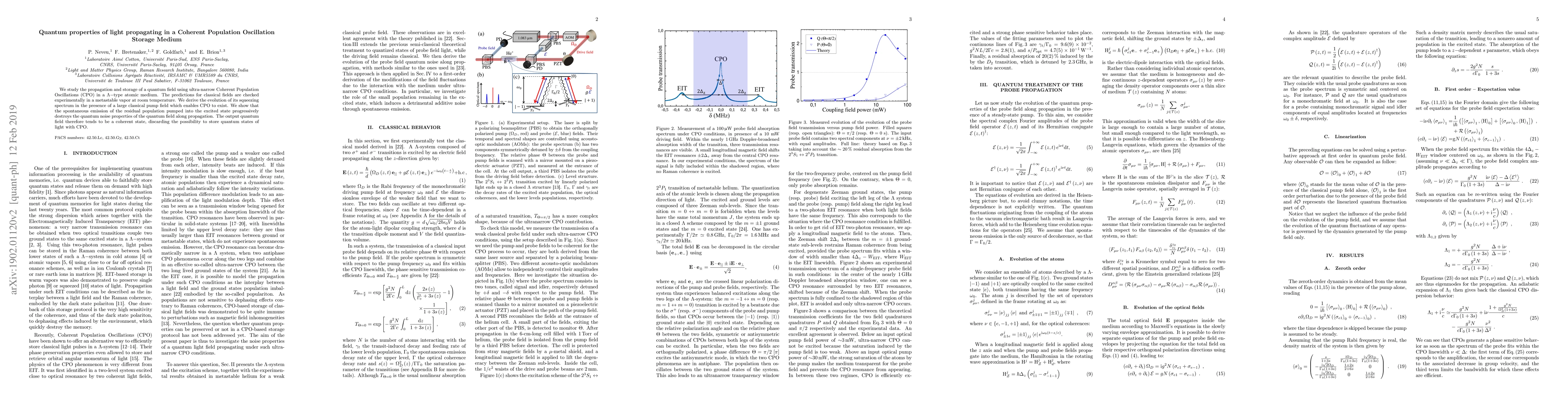 This paper investigates the quantum field's propagation and storage in a $\Lambda-$type atomic medium using ultra-narrow Coherent Population Oscillations (CPO). Experimental results show that spontaneous emission from the excited state degrades quantum noise properties, leading to an output coherent state and precluding the storage of quantum states of light via CPO.