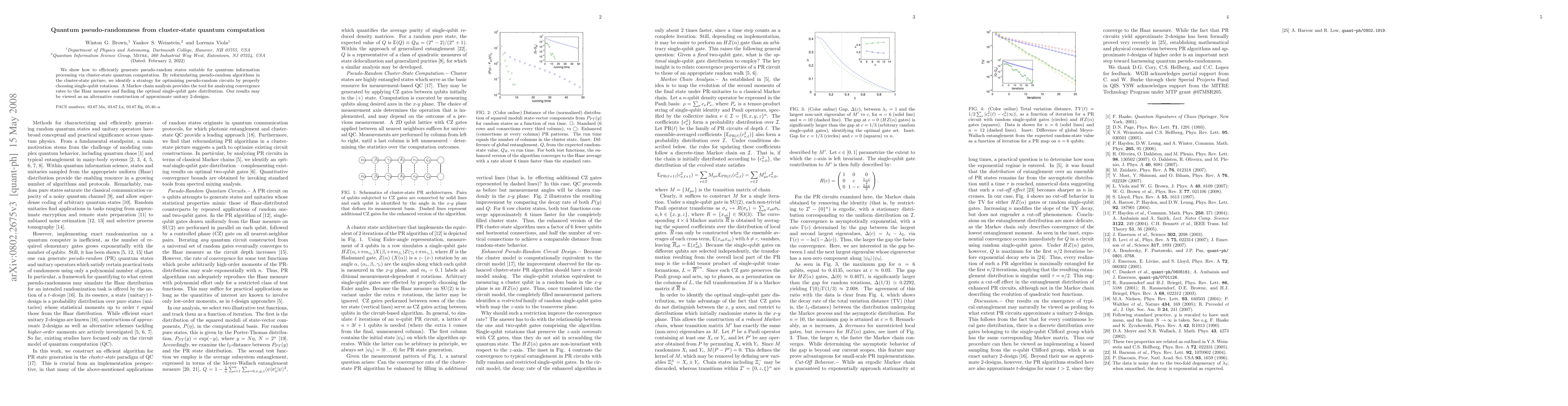 This paper presents a method for generating pseudo-random states through cluster-state quantum computation, optimizing pseudo-random circuits using single-qubit rotations and Markov chain analysis to achieve convergence to the Haar measure, offering an alternative construction for approximate unitary 2-designs.