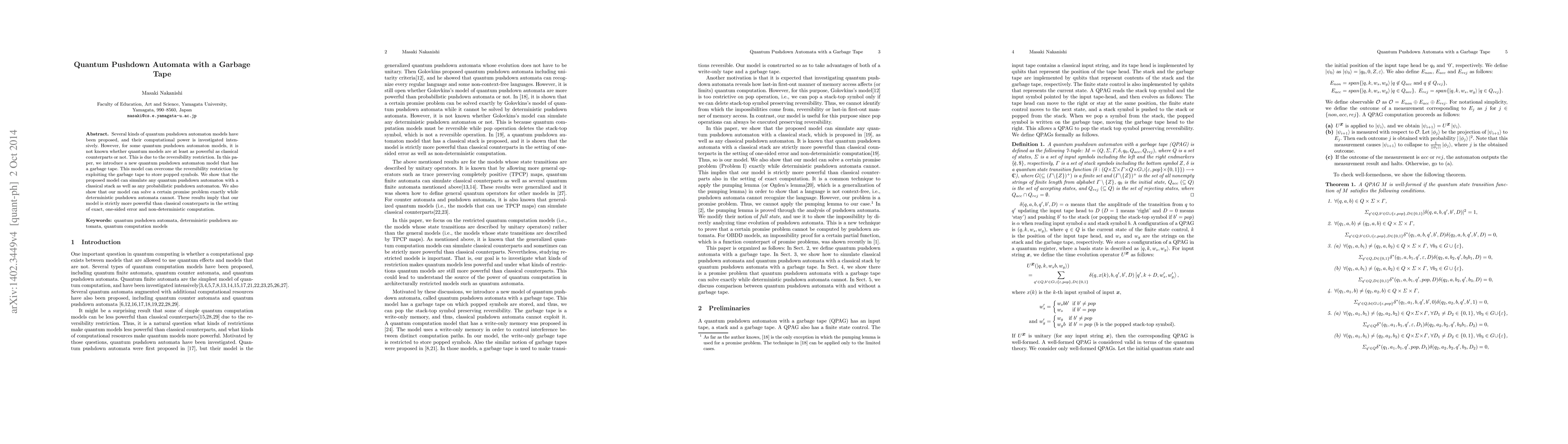 This paper introduces a novel quantum pushdown automaton model with a garbage tape to overcome reversibility restrictions, demonstrating its ability to simulate any quantum pushdown automaton with a classical stack and any probabilistic pushdown automaton. The model is shown to be strictly more powerful than classical counterparts in exact, one-sided error, and non-deterministic computation.