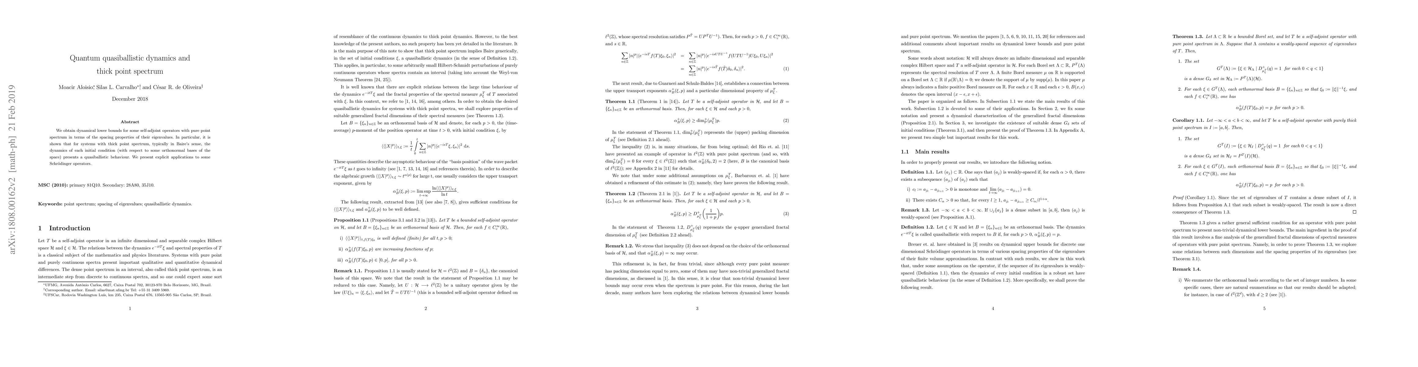 The research paper derives dynamical lower bounds for self-adjoint operators with pure point spectrum, focusing on systems with thick point spectrum. It demonstrates that such systems exhibit quasiballistic behavior in their initial condition dynamics, as shown through explicit applications to Schrödinger operators.