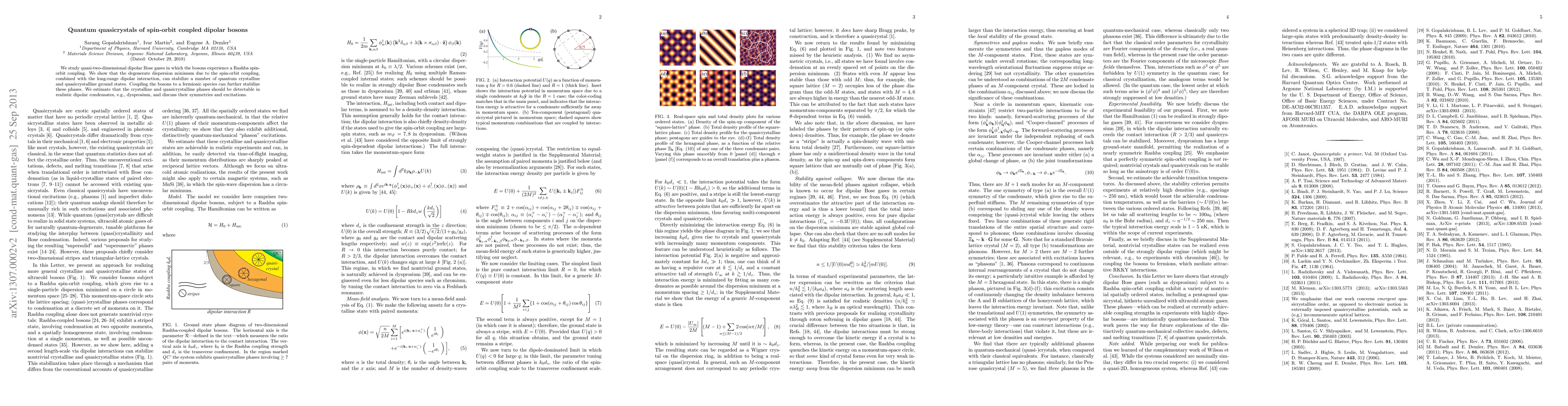 This paper investigates quasi-two-dimensional dipolar Bose gases with Rashba spin-orbit coupling, revealing that the combined effects of spin-orbit coupling and long-range dipolar interactions can stabilize quantum crystalline and quasicrystalline ground states. The study also finds that coupling these bosons with fermions can further stabilize these phases, suggesting potential detection in realistic dipolar condensates like dysprosium.