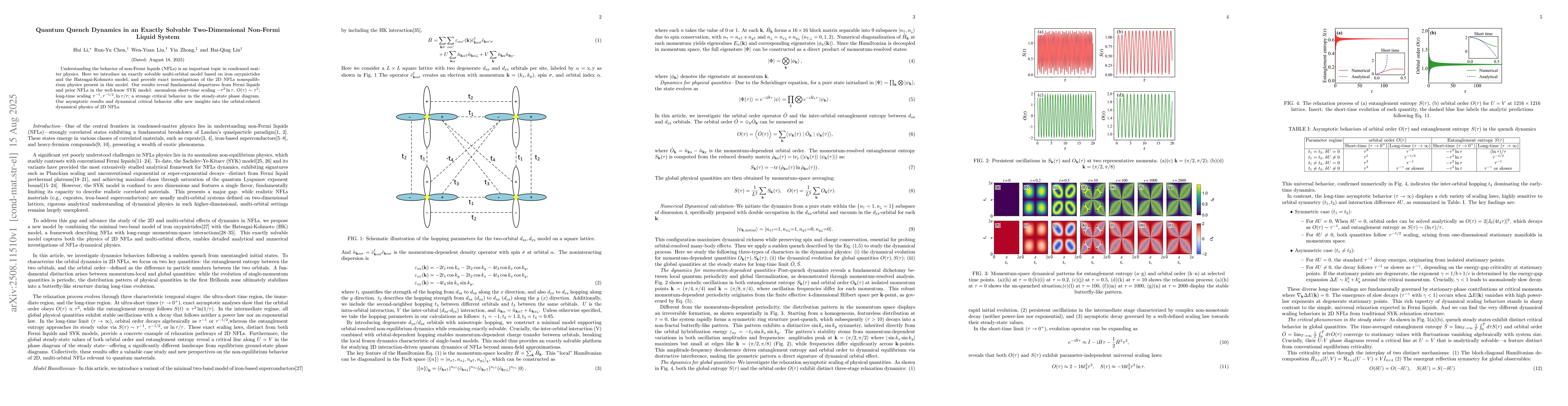 Understanding the behavior of non-Fermi liquids (NFLs) is an important topic in condensed matter physics. Here we introduce an exactly solvable multi-orbital model based on iron oxypnictides and the Hatsugai-Kohmoto model, and provide exact investigations of the 2D NFLs nonequilibrium physics present in this model. Our results reveal fundamental departures from Fermi liquids and prior NFLs in the well-know SYK model: anomalous short-time scaling $-\tau^2 \ln \tau$, $O(\tau) \sim \tau^2$; long-time scaling $ \tau^{-1}, \tau^{-1/2}, \ln \tau / \tau$; a strange critical behavior in the steady-state phase diagram. Our asymptotic results and dynamical critical behavior offer new insights into the orbital-related dynamical physics of 2D NFLs.