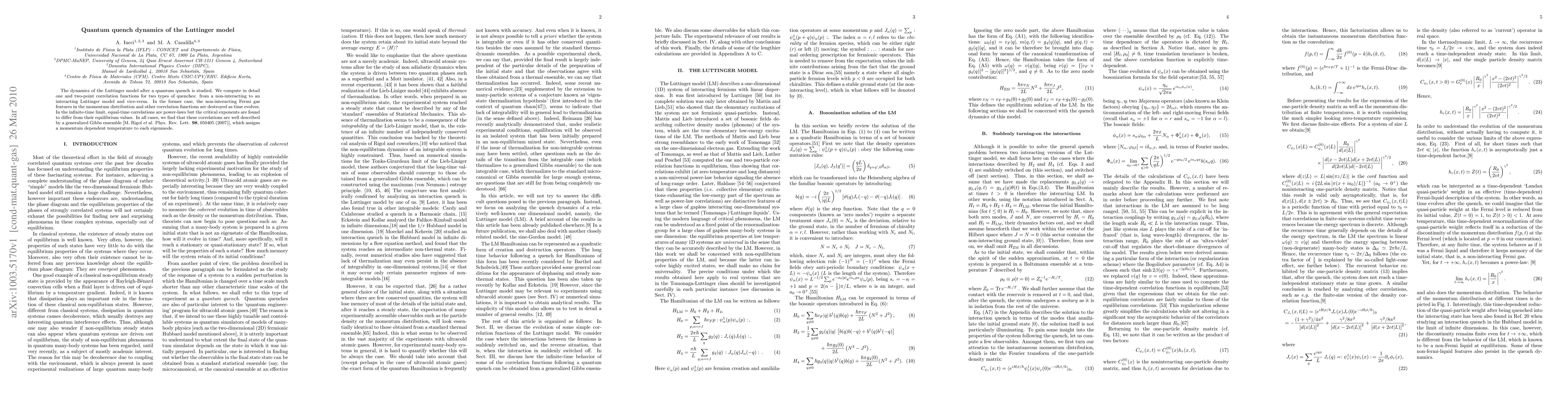This paper investigates the quantum quench dynamics of the Luttinger model, focusing on one and two-point correlation functions for transitions between non-interacting and interacting regimes. The study reveals that while correlations evolve differently over time, they are well described by a generalized Gibbs ensemble with momentum-dependent temperatures.