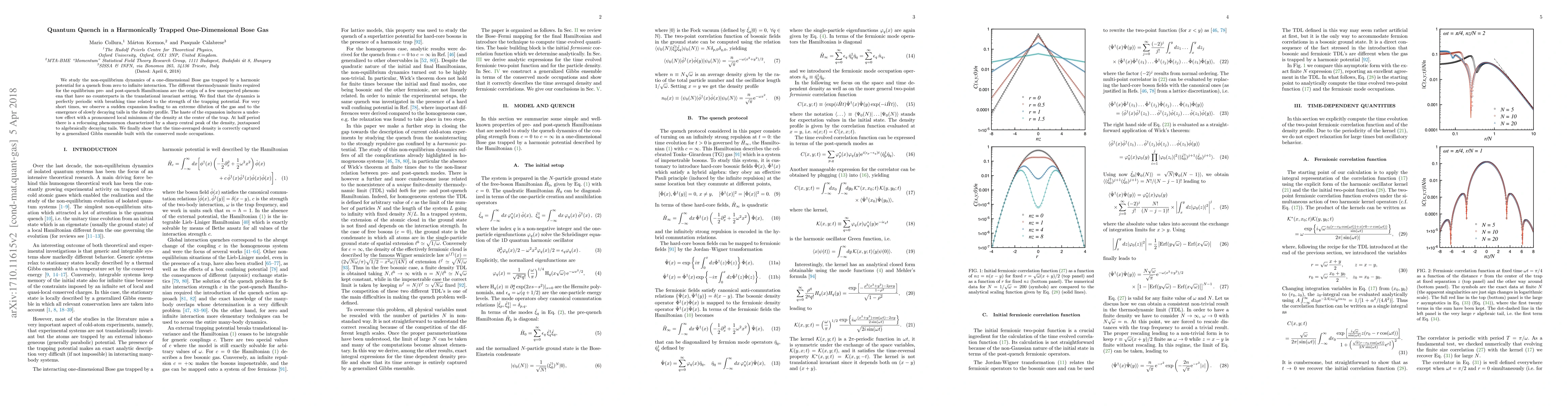 This paper investigates the non-equilibrium dynamics of a one-dimensional Bose gas undergoing a quench from zero to infinite interaction within a harmonic trap. The study reveals periodic dynamics with a breathing time dependent on the trap strength, and highlights phenomena such as sudden expansion, emergence of density tails, and a refocusing effect with a central peak, all captured by a generalized Gibbs ensemble.
