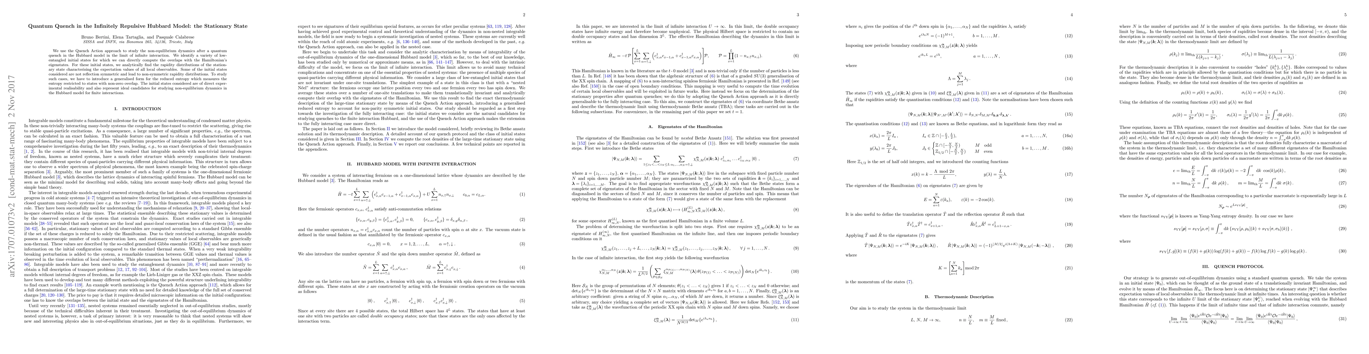 We use the Quench Action approach to study the non-equilibrium dynamics after a quantum quench in the Hubbard model in the limit of infinite interaction. We identify a variety of low-entangled initial states for which we can directly compute the overlaps with the Hamiltonian's eigenstates. For these initial states, we analytically find the rapidity distributions of the stationary state characterising the expectation values of all local observables. Some of the initial states considered are not reflection symmetric and lead to non-symmetric rapidity distributions. To study such cases, we have to introduce a generalised form for the reduced entropy which measures the entropy restricted to states with non-zero overlap. The initial states considered are of direct experimental realisability and also represent ideal candidates for studying non-equilibrium dynamics in the Hubbard model for finite interactions.