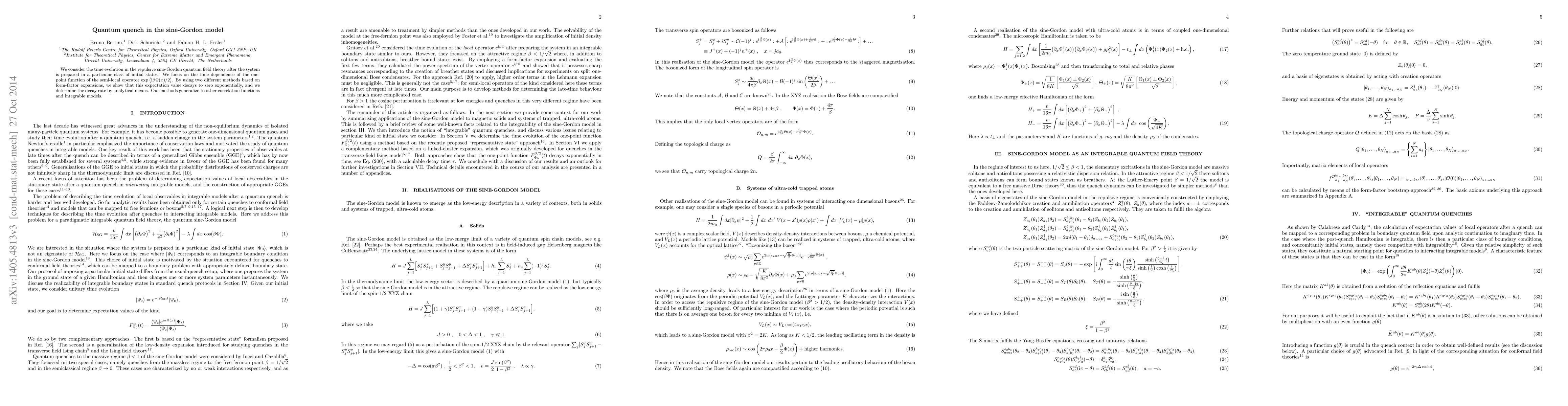 The sine-Gordon model's one-point function decays to zero exponentially after a quantum quench, with the decay rate determined analytically.