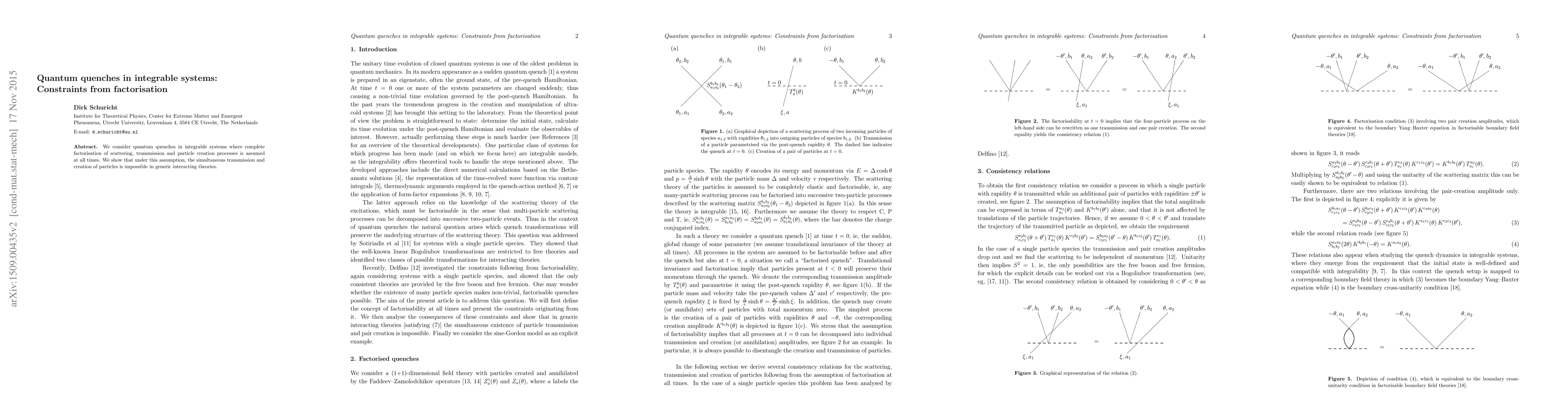 We consider quantum quenches in integrable systems where complete factorisation of scattering, transmission and particle creation processes is assumed at all times. We show that under this assumption, the simultaneous transmission and creation of particles is impossible in generic interacting theories.