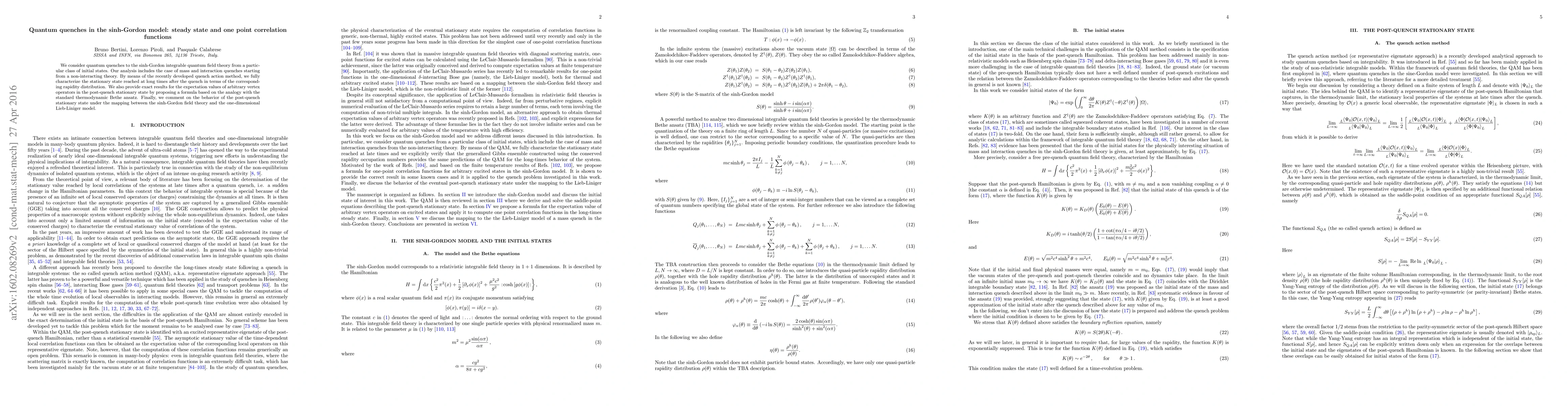 This paper investigates quantum quenches in the sinh-Gordon model, characterizing the long-time stationary state using the quench action method and deriving exact results for vertex operator correlations. It also explores the mapping between the sinh-Gordon model and the Lieb-Liniger model.