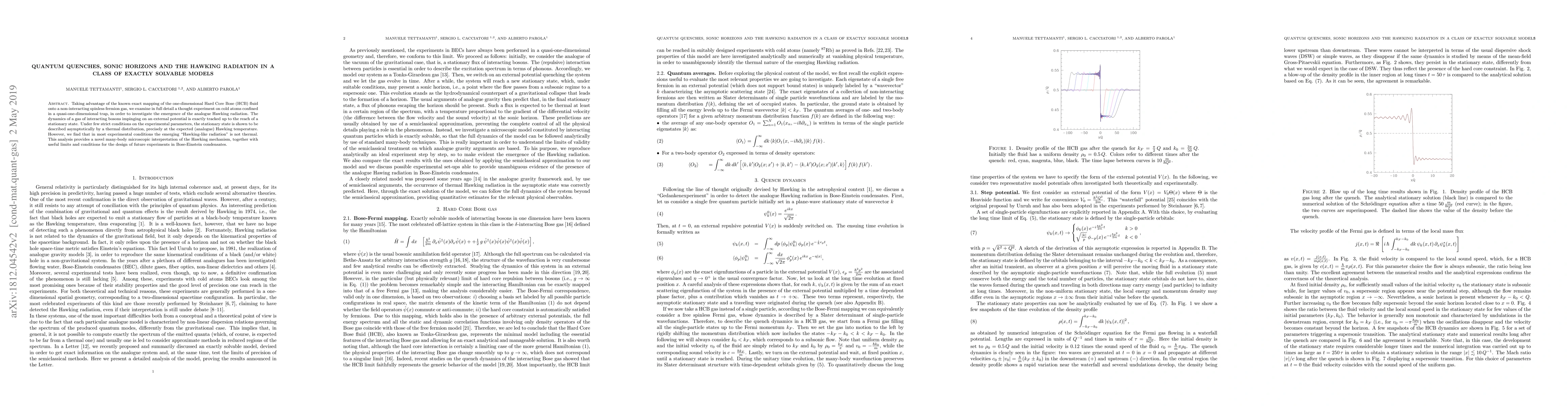 Taking advantage of the known exact mapping of the one-dimensional Hard Core Bose (HCB) fluid onto a non-interacting spinless fermion gas, we examine in full detail a thought experiment on cold atoms confined in a quasi-one-dimensional trap, in order to investigate the emergence of the analogue Hawking radiation. The dynamics of a gas of interacting bosons impinging on an external potential is exactly tracked up to the reach of a stationary state. Under few strict conditions on the experimental parameters, the stationary state is shown to be described asymptotically by a thermal distribution, precisely at the expected (analogue) Hawking temperature. However, we find that in most experimental conditions the emerging `Hawking-like radiation' is not thermal. This analysis provides a novel many-body microscopic interpretation of the Hawking mechanism, together with useful limits and conditions for the design of future experiments in Bose-Einstein condensates.